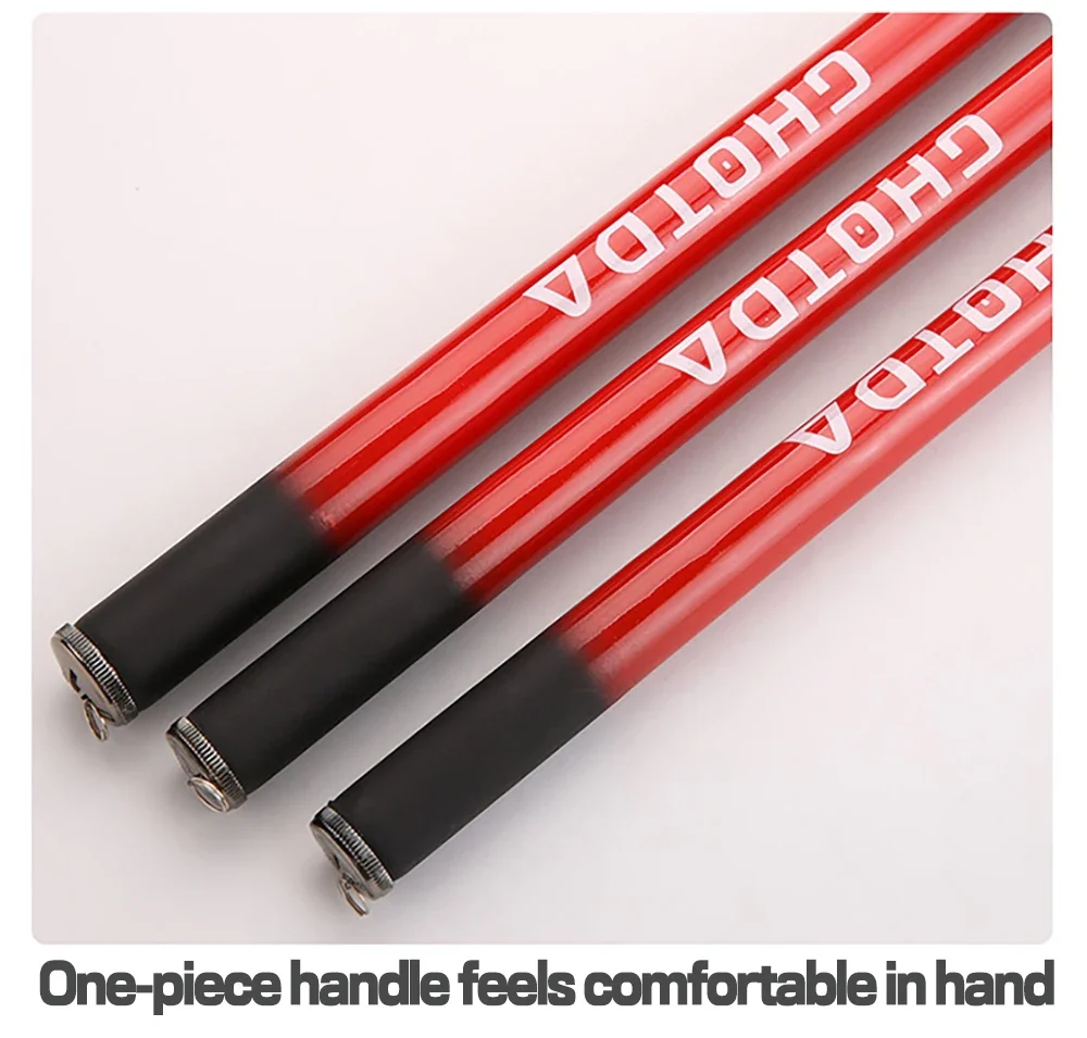 La varilla está diseñada con un revestimiento de pintura al horno de piano duradero y elegante, con un acabado completo y brillante que es resistente a la decoloración. El asiento de hebilla de tarjeta de metal garantiza que su carrete de pesca esté firmemente bloqueado en su lugar y no se tambalee. Además, tiene un agarre cómodo y ergonómico, lo que hace que sea fácil de sostener durante períodos prolongados.