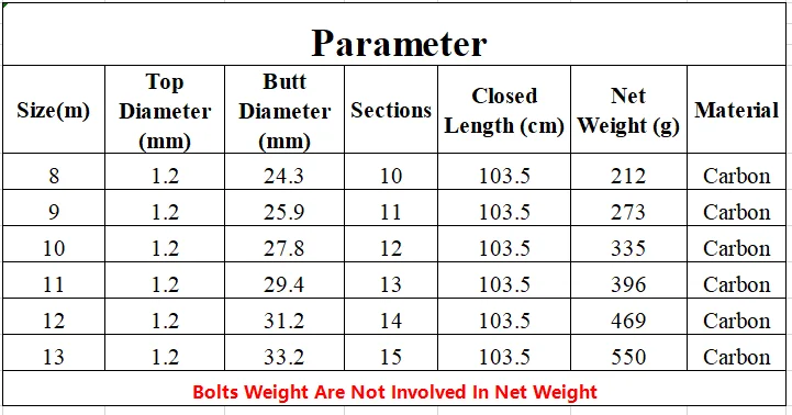 Longitud: 8-13 m Longitud cerrada: 103,5 cm