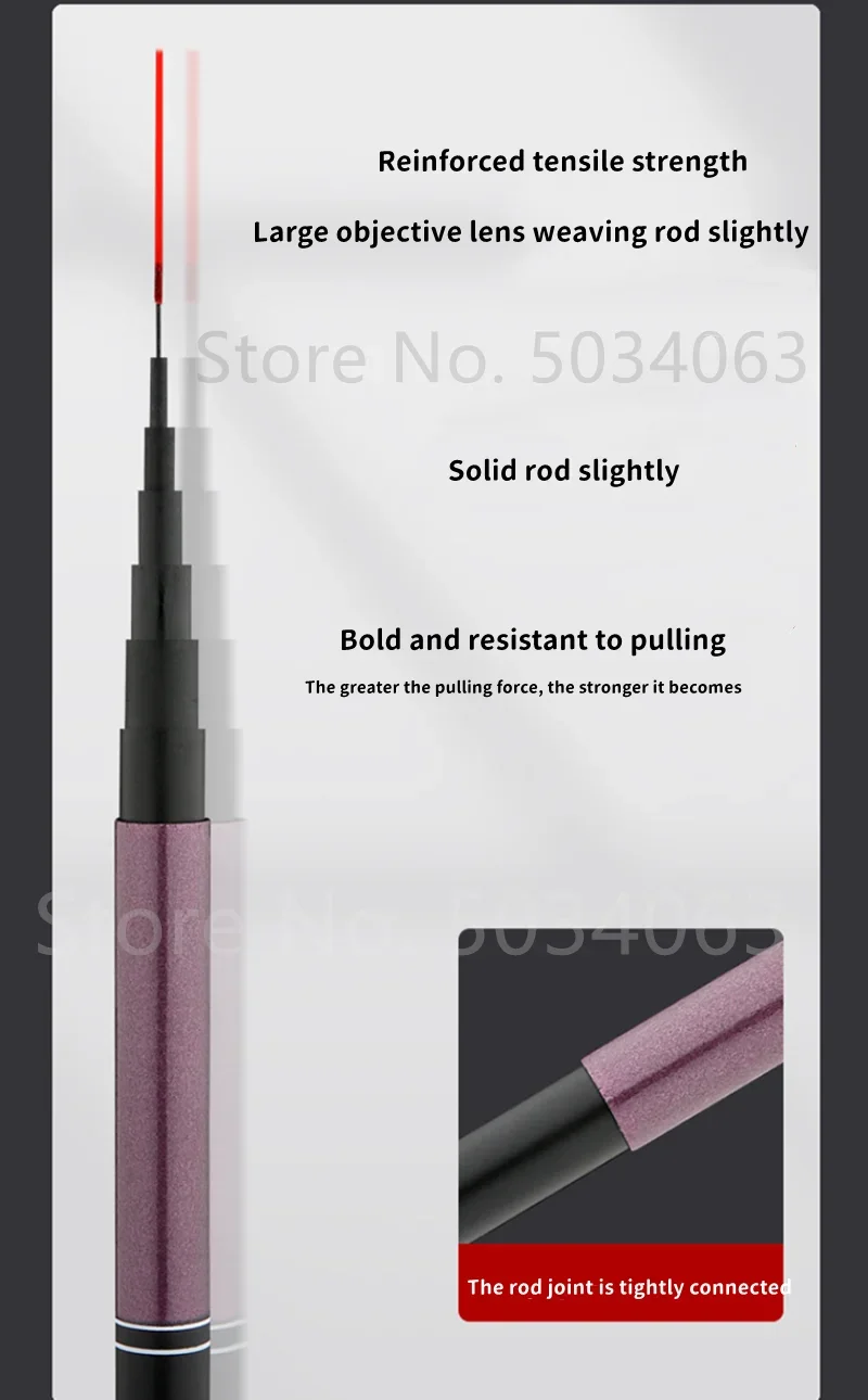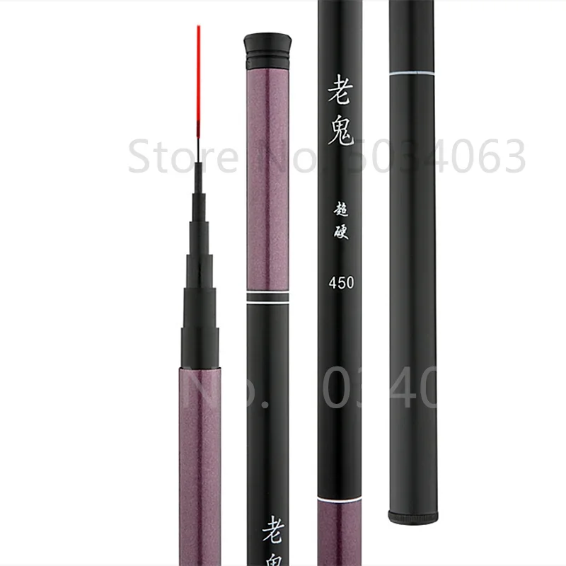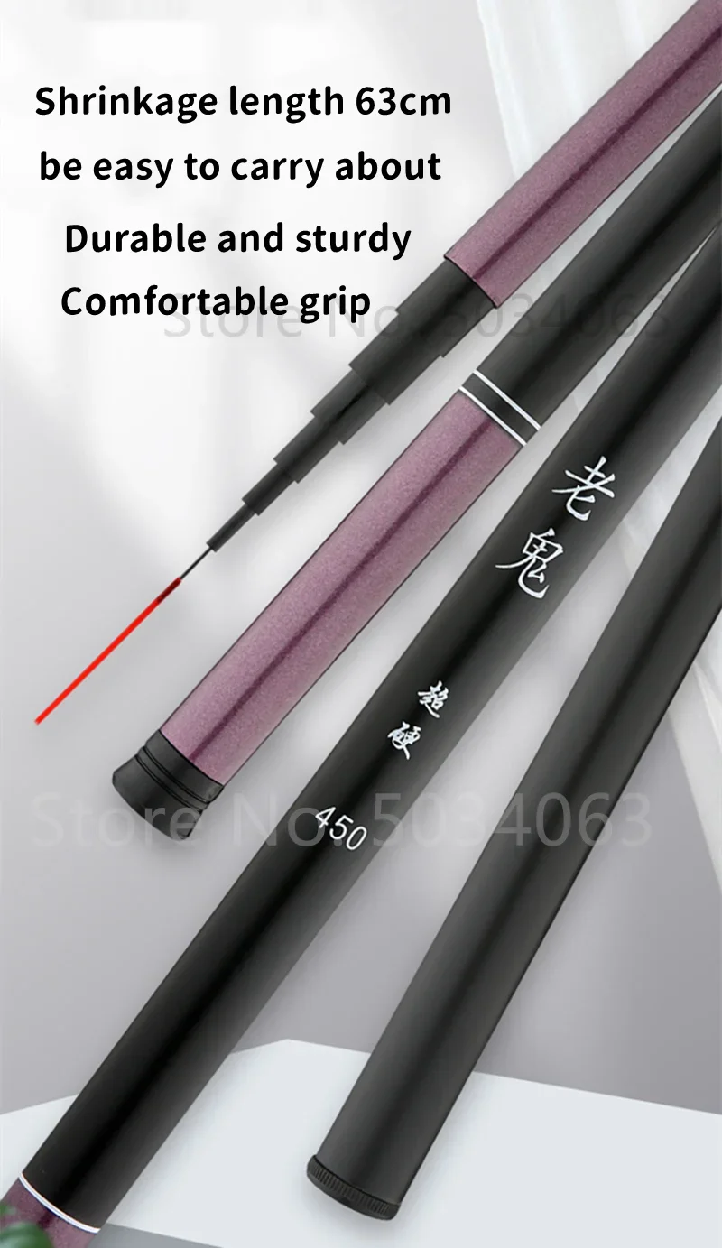 Caña de pescar telescópica de carbono de 2,7 M/3,6 M/4,5 M/5,4 M/6,3 M caña de pescar de fibra dura superligera
