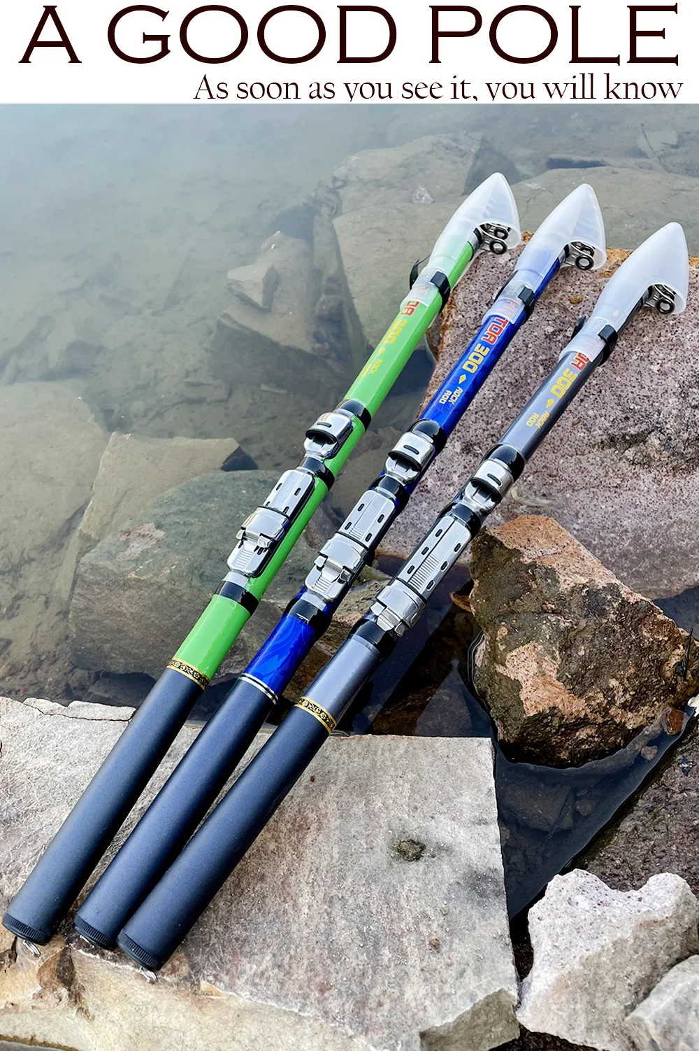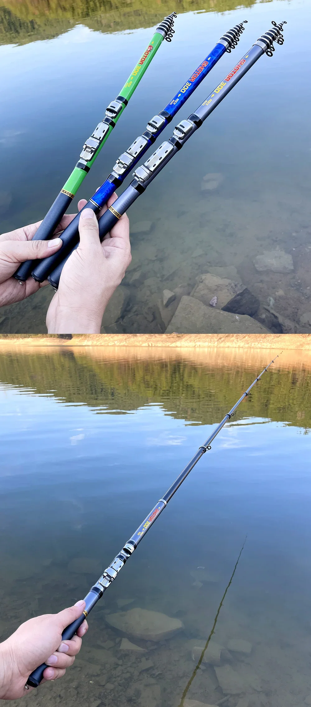 Ghotda caña de pescar telescópica fibra de carbono roca giratoria mosca carpa alimentador portátil 1,5-3,0 M Mini poste portátil herramientas de viaje 3 colores