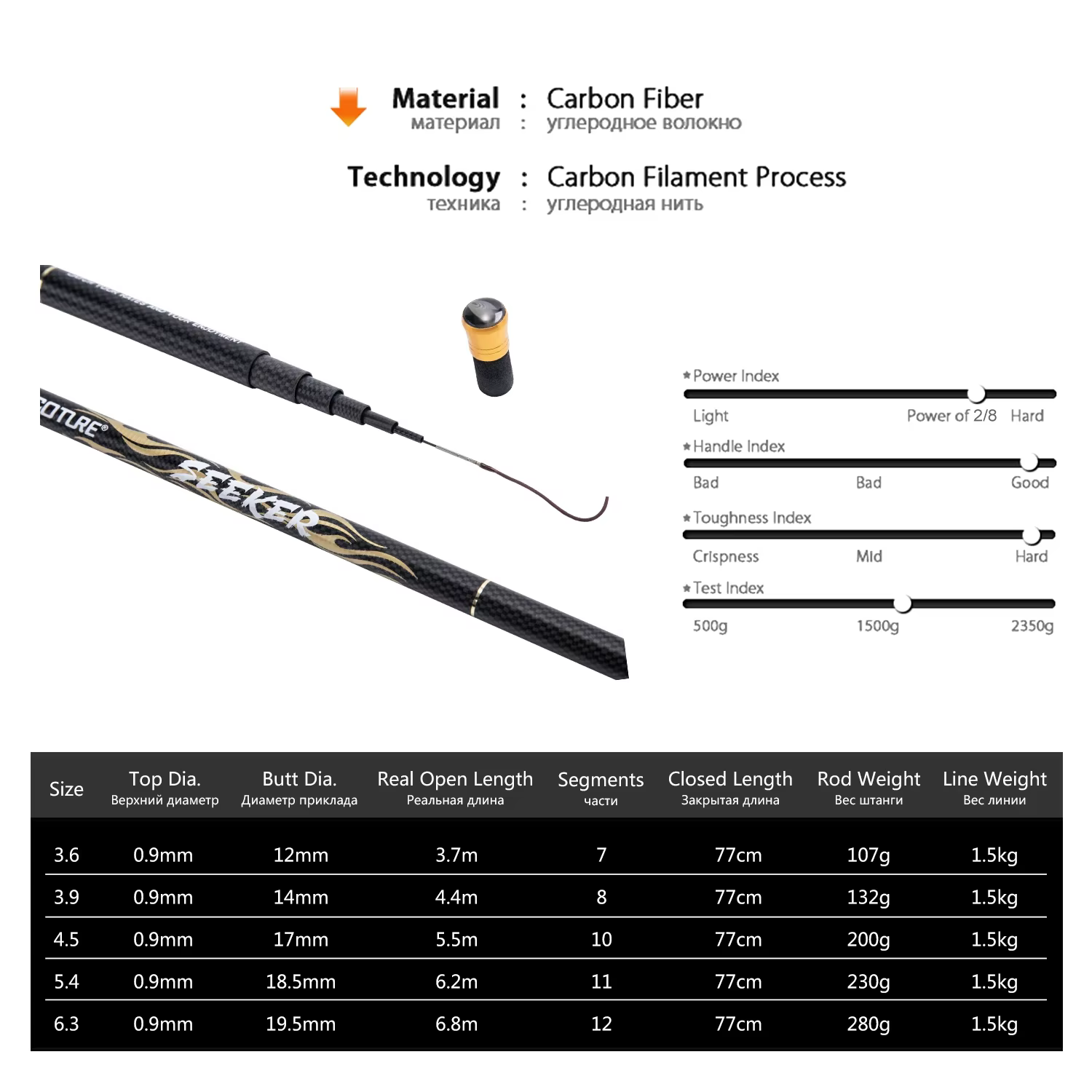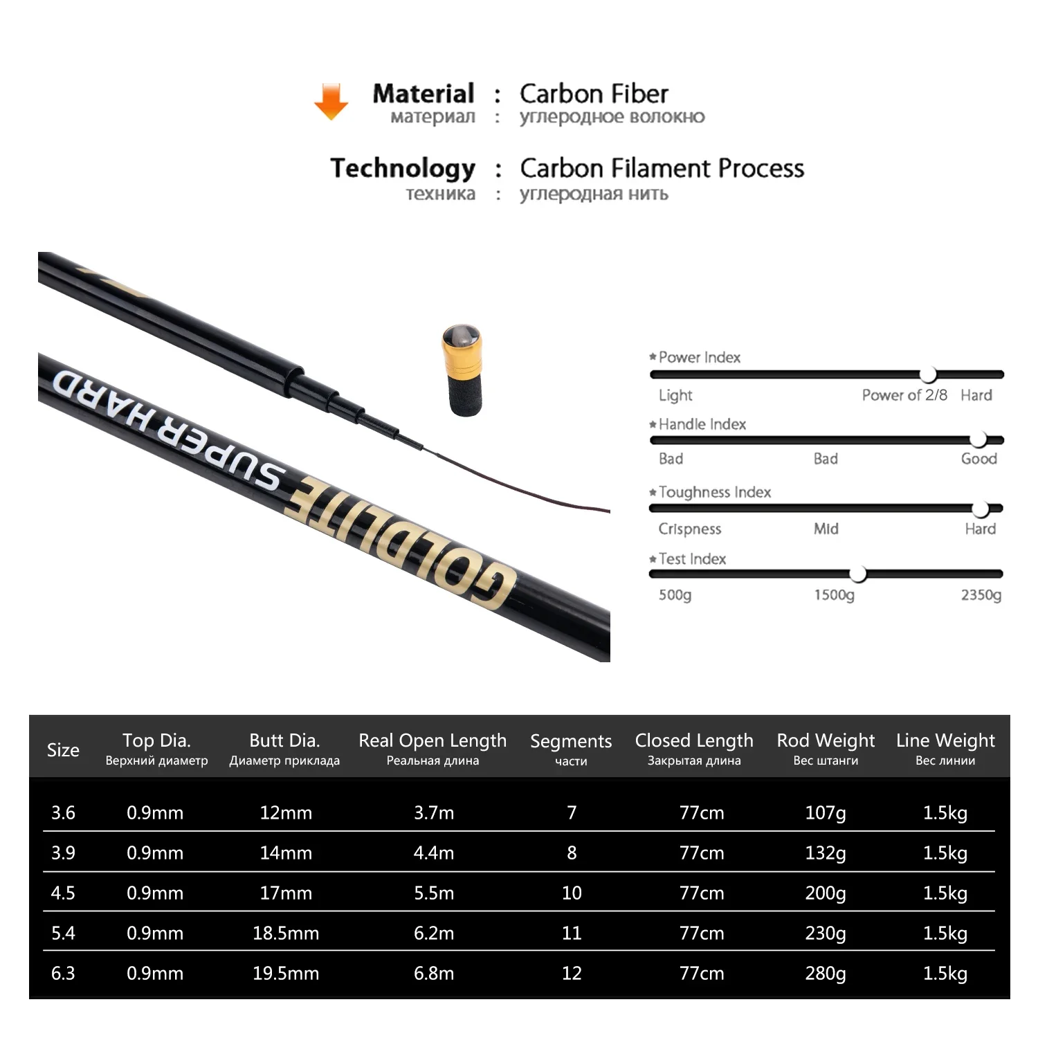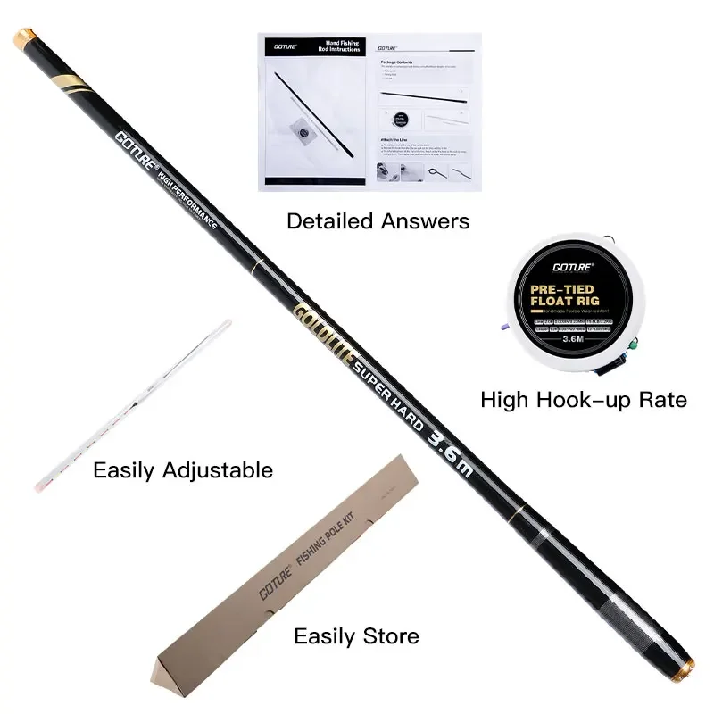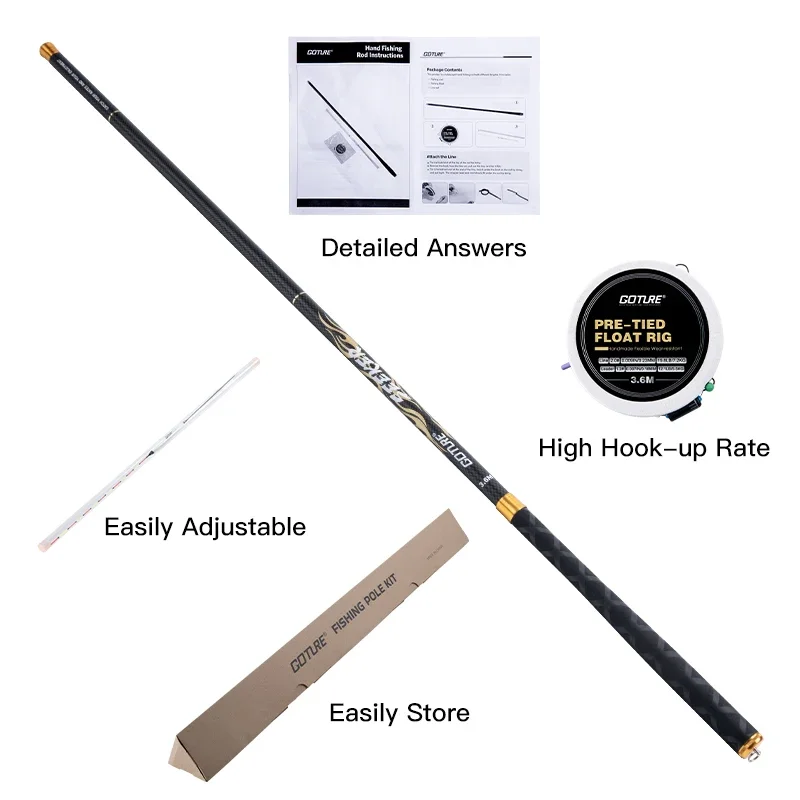 Caña de pescar telescópica Goture 2/8 Power 3,6/4,5/5,4/7,2 M caña ultraligera portátil de fibra de carbono dura arrastre máximo 5Kg herramientas de pesca