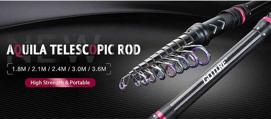 Caña de pescar telescópica Goture 1,8 m-3,6 m caña de viaje giratoria 24T fibra de carbono caña de pescar en el mar para postes de alimentación de pesca de carpa