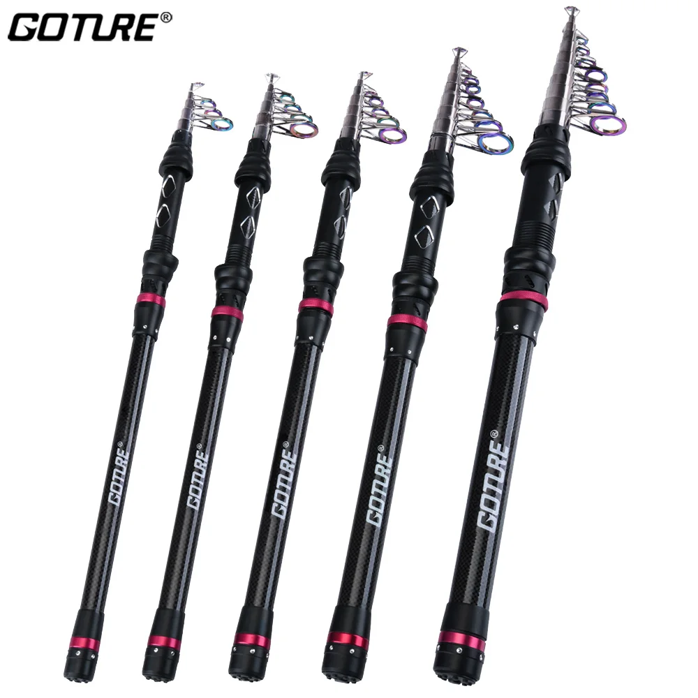 Caña de pescar telescópica Goture 1,8 m-3,6 m caña de viaje giratoria 24T fibra de carbono caña de pescar en el mar para postes de alimentación de pesca de carpa