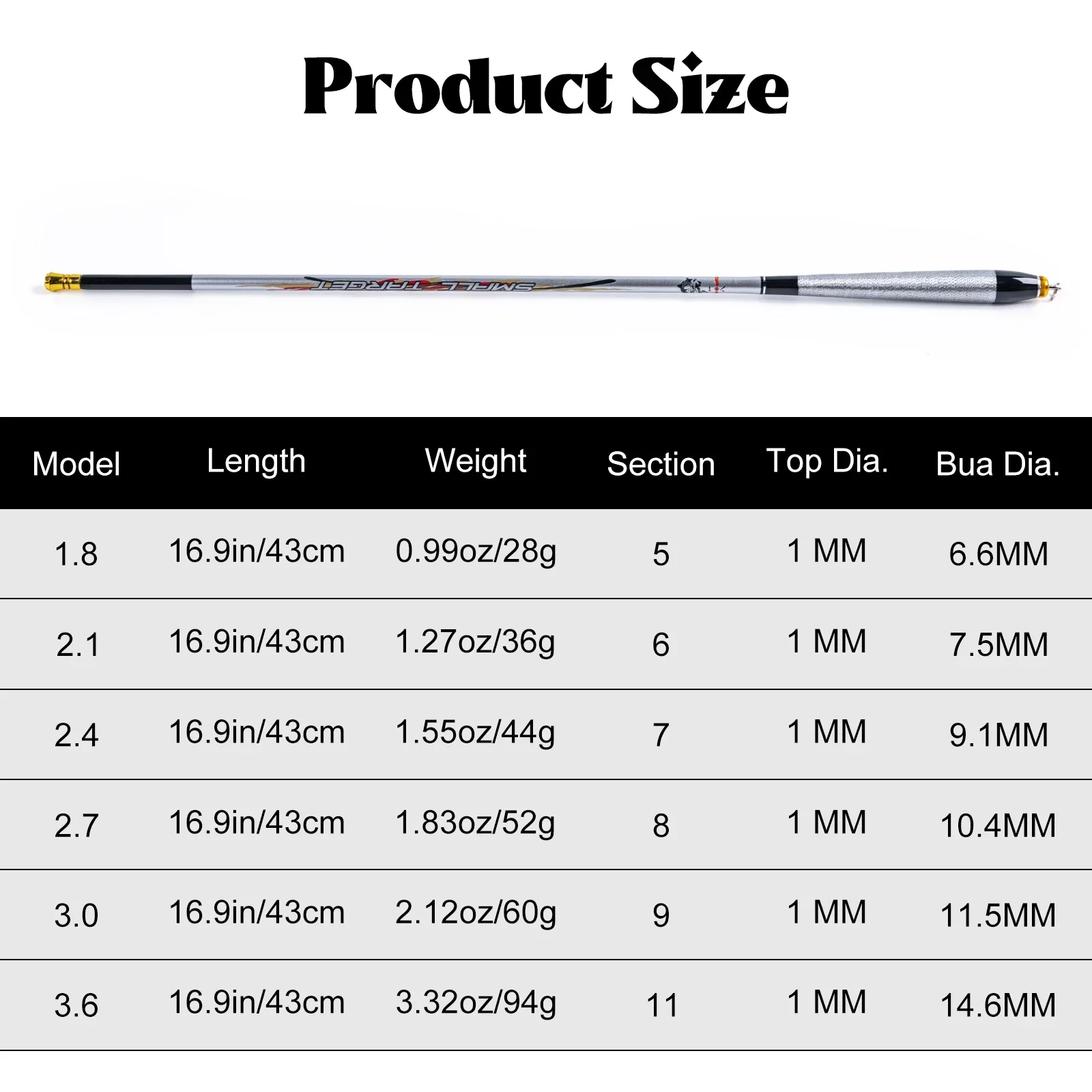 Caña de pescar telescópica Goture SMRLL TARGET/CARBON 1,8 m 2,1 m 2,4 m 2,7 m 3,0 m 3,6 m caña portátil ultraligera para pesca en estanques de corriente
