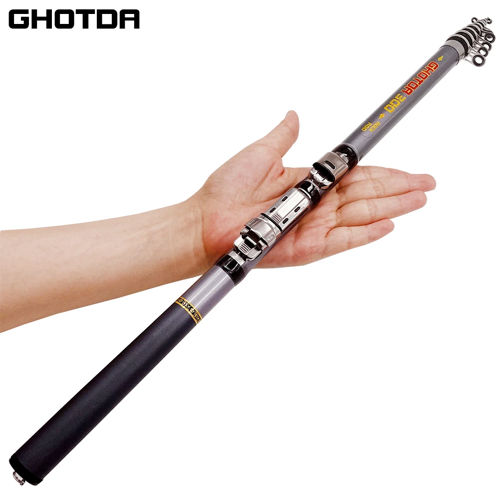 Especificación del artículo1. Esta caña de pescar está hecha de fibra de carbono, fuerte y duradera.2. Corto y mini, fácil de llevar.3. Caña de pescar de longitud ajustable para situaciones donde el equipo de pesca de tamaño completo es incómodo.4. Ideal para la pesca desde la orilla, arrecifes y rocas en viajes y vacaciones.