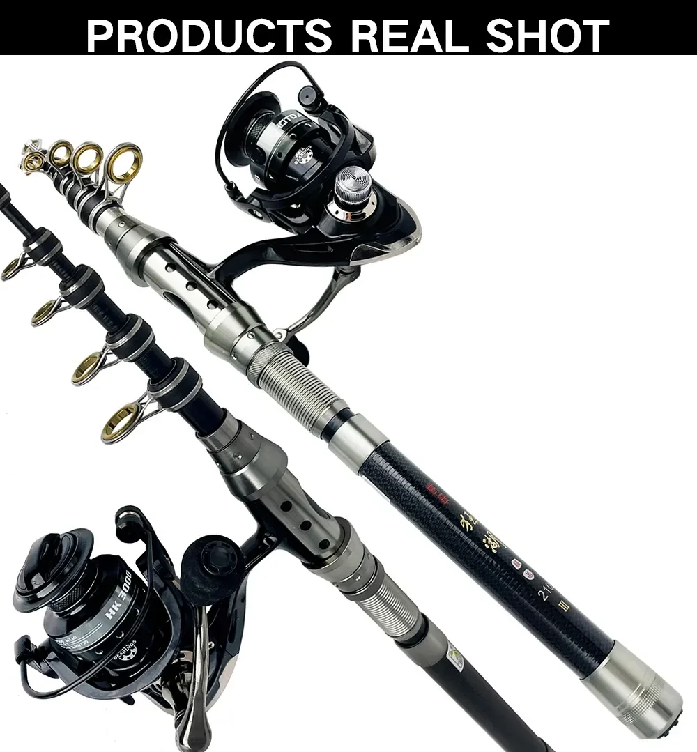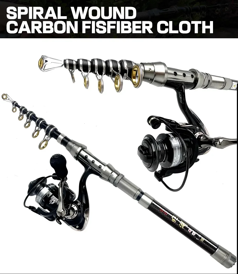 1. Esta caña de pescar está hecha de fibra de carbono, resistente y duradera.