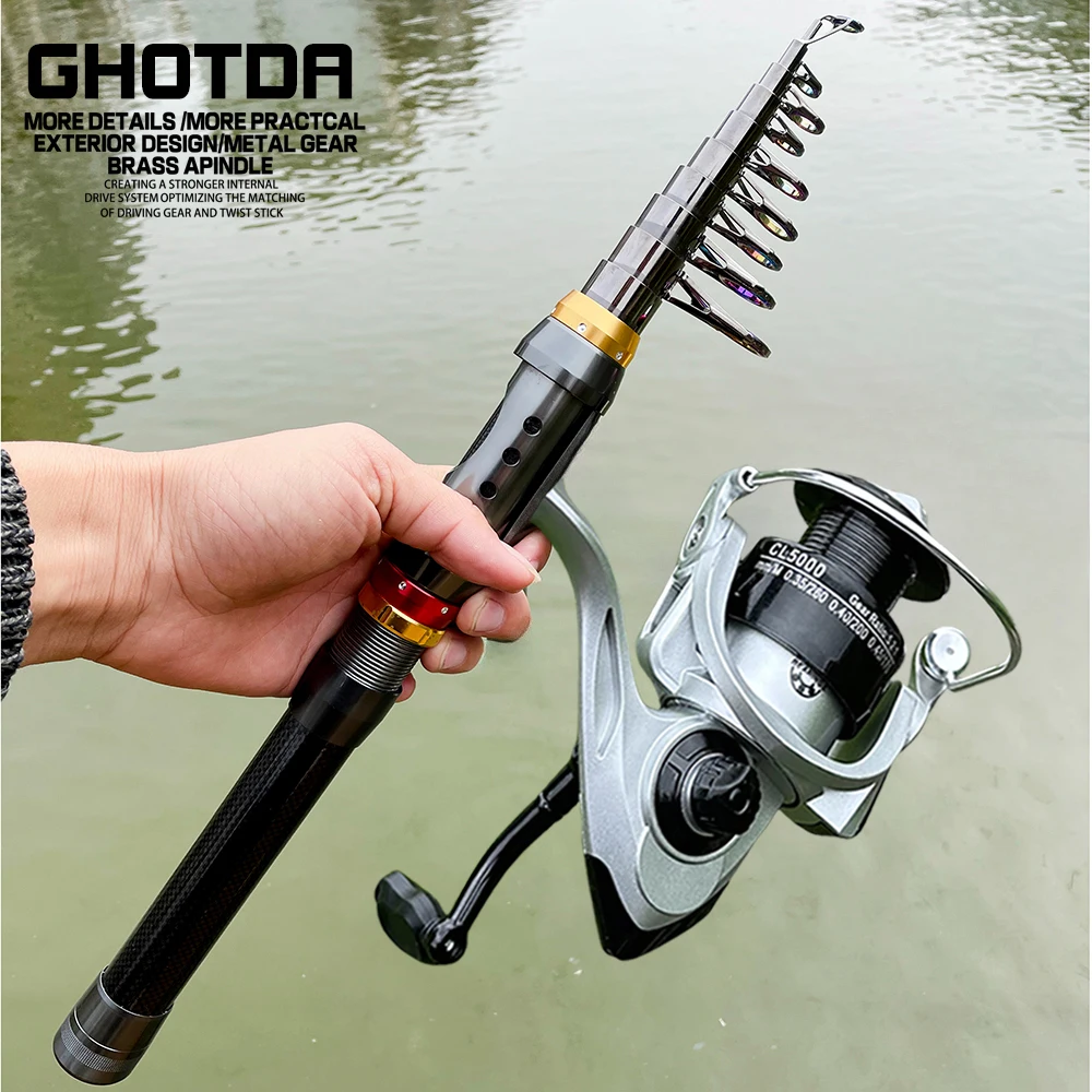 Caña de pescar giratoria GHOTDA Combo caña de mar telescópica de carbono ultraligera 1.8-3,6M carrete de Baitcasting 5,2: 1 relación de engranaje arrastre máximo 8kg