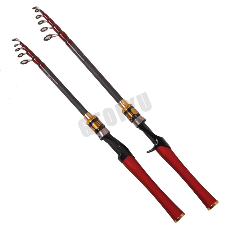 Caña de pescar telescópica multifunción, giratoria, de fundición, de alto carbono, duradera, antideslizante, 2,1-2,7 m