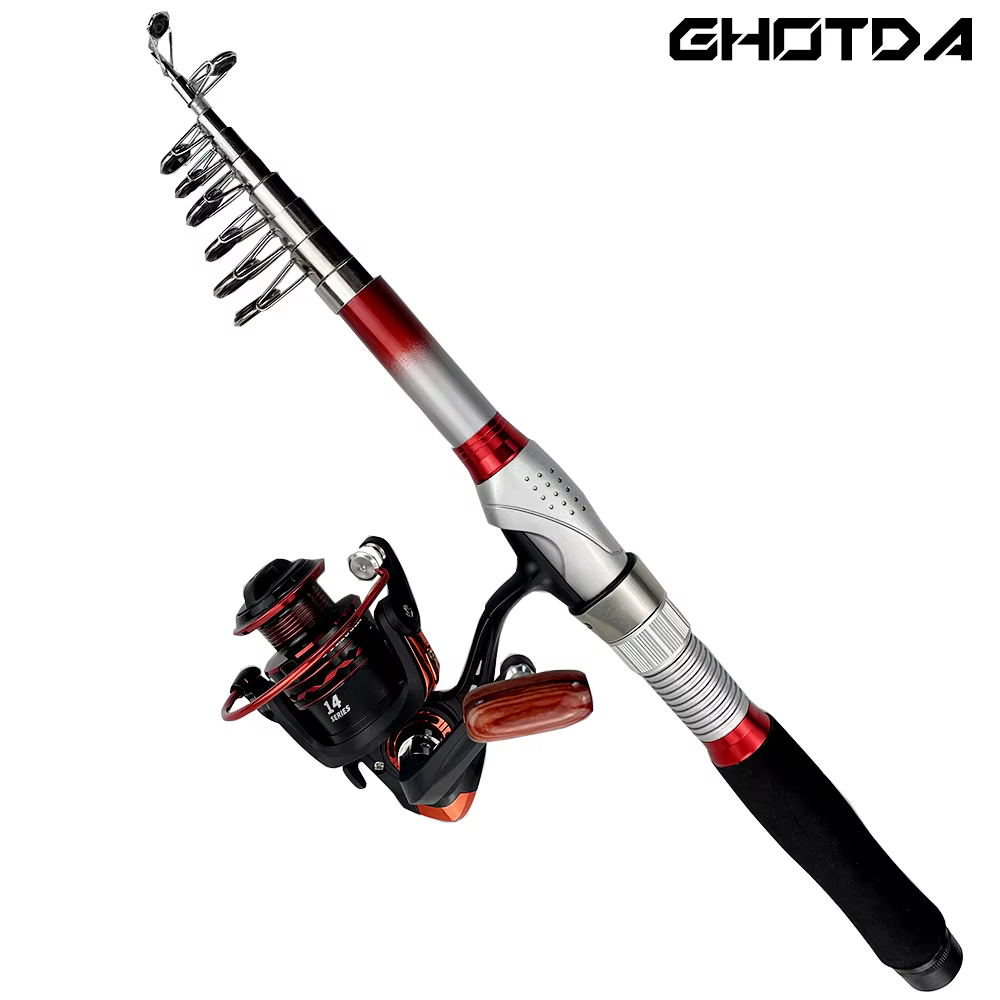 3. Caña de pescar de longitud ajustable para situaciones donde el equipo de pesca de tamaño completo es incómodo.