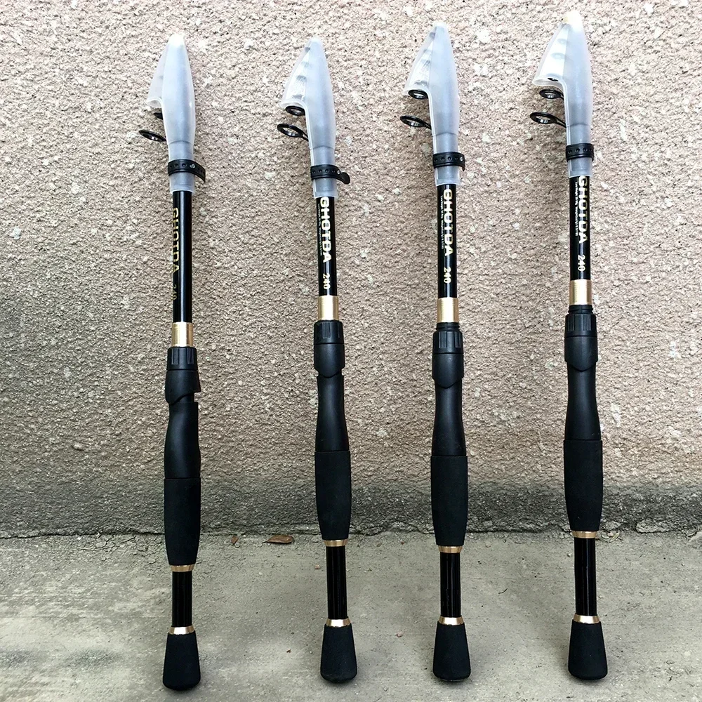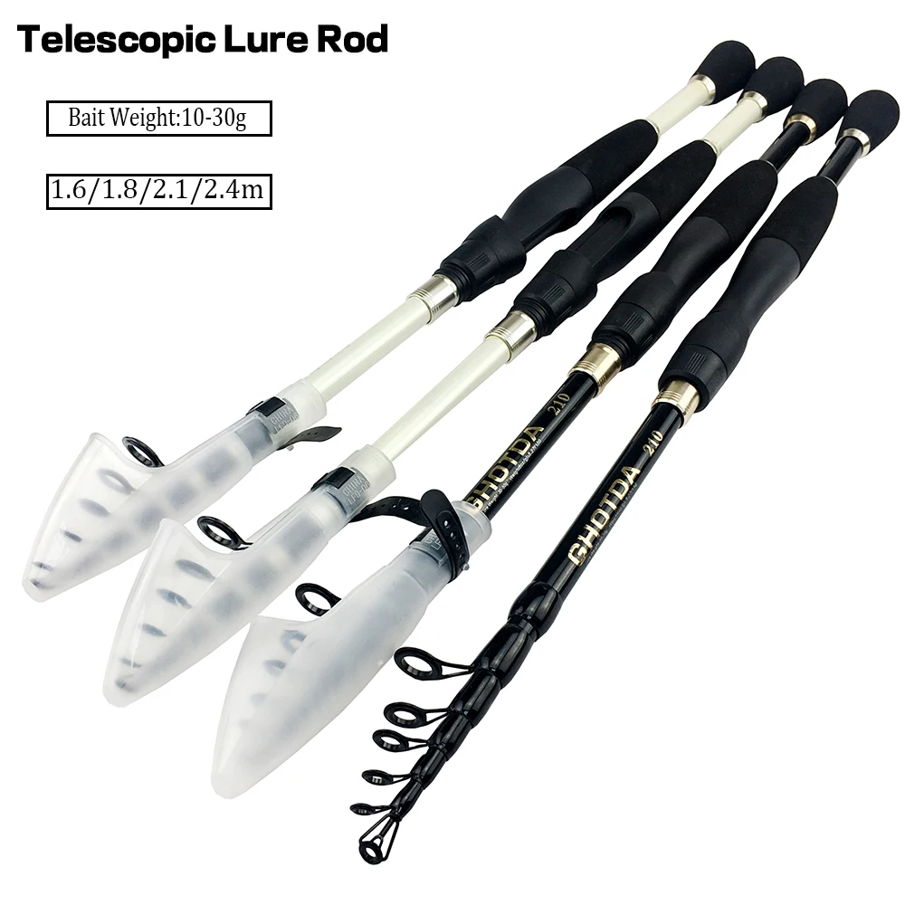 Caña de pescar telescópica portátil de 1,6-2,4 m, mango recto ultraligero de carbono/mango de fundición, caña de pescar de área multiagua, señuelo de Pesca 10-30g