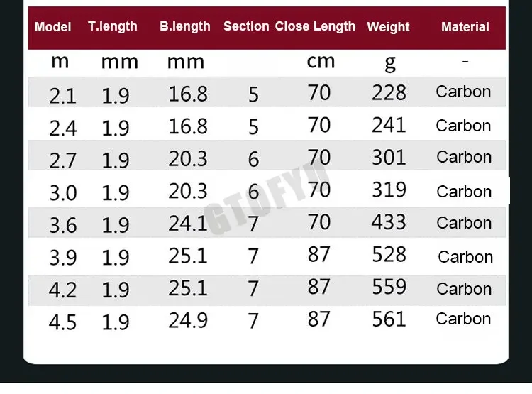 Señuelo: 10-300g, longitud: 2,1-4,5 M, prueba: 10kg por encima