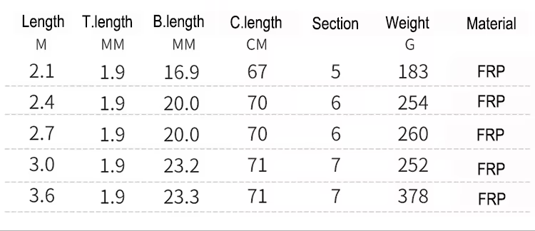 Señuelo: 10-300g, longitud: 2,1-3,6 M, prueba: 10kg por encima
