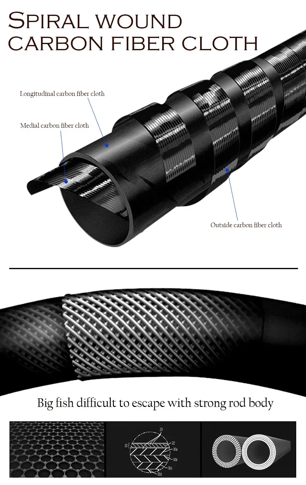El material de fibra de carbono produce un cuerpo de varilla resistente.