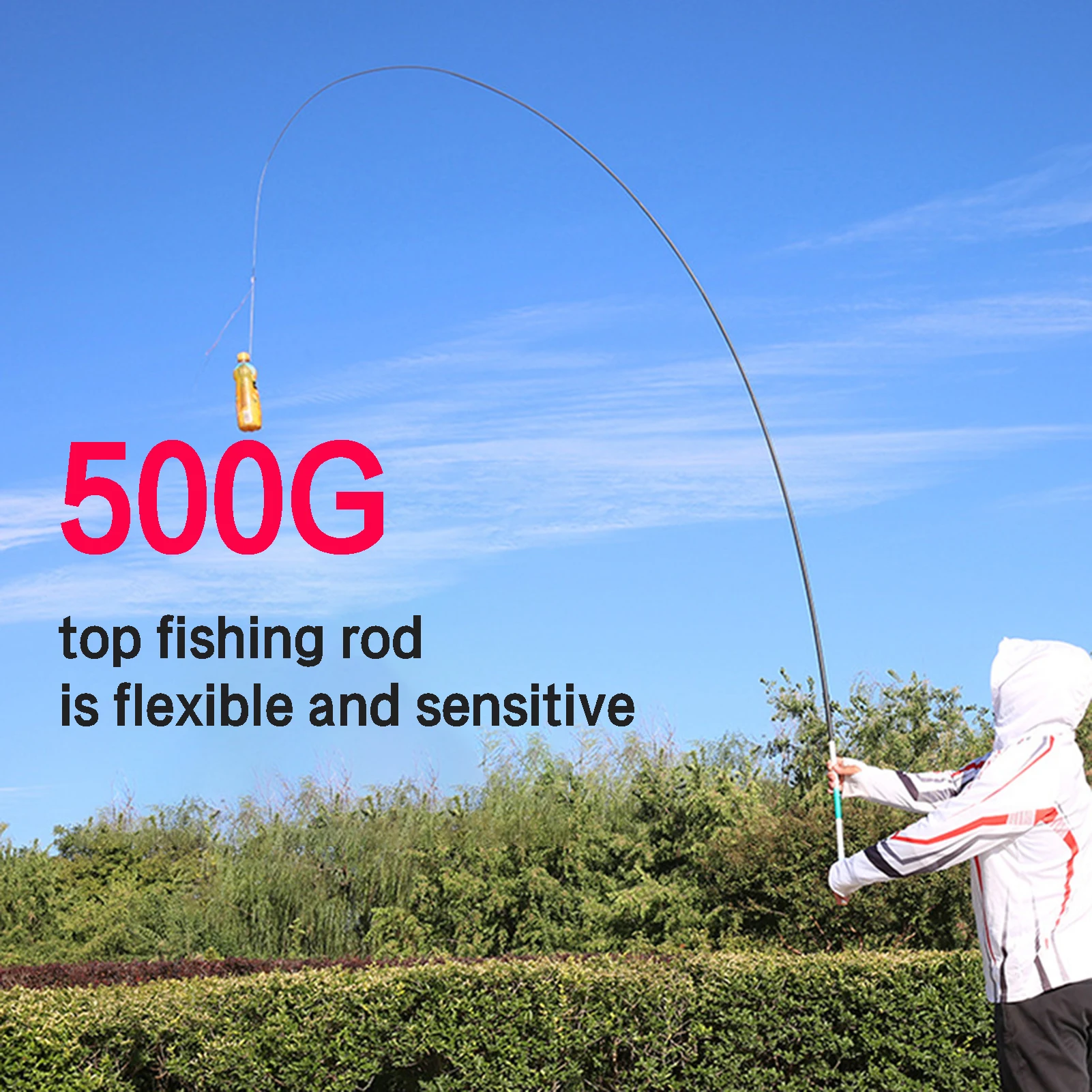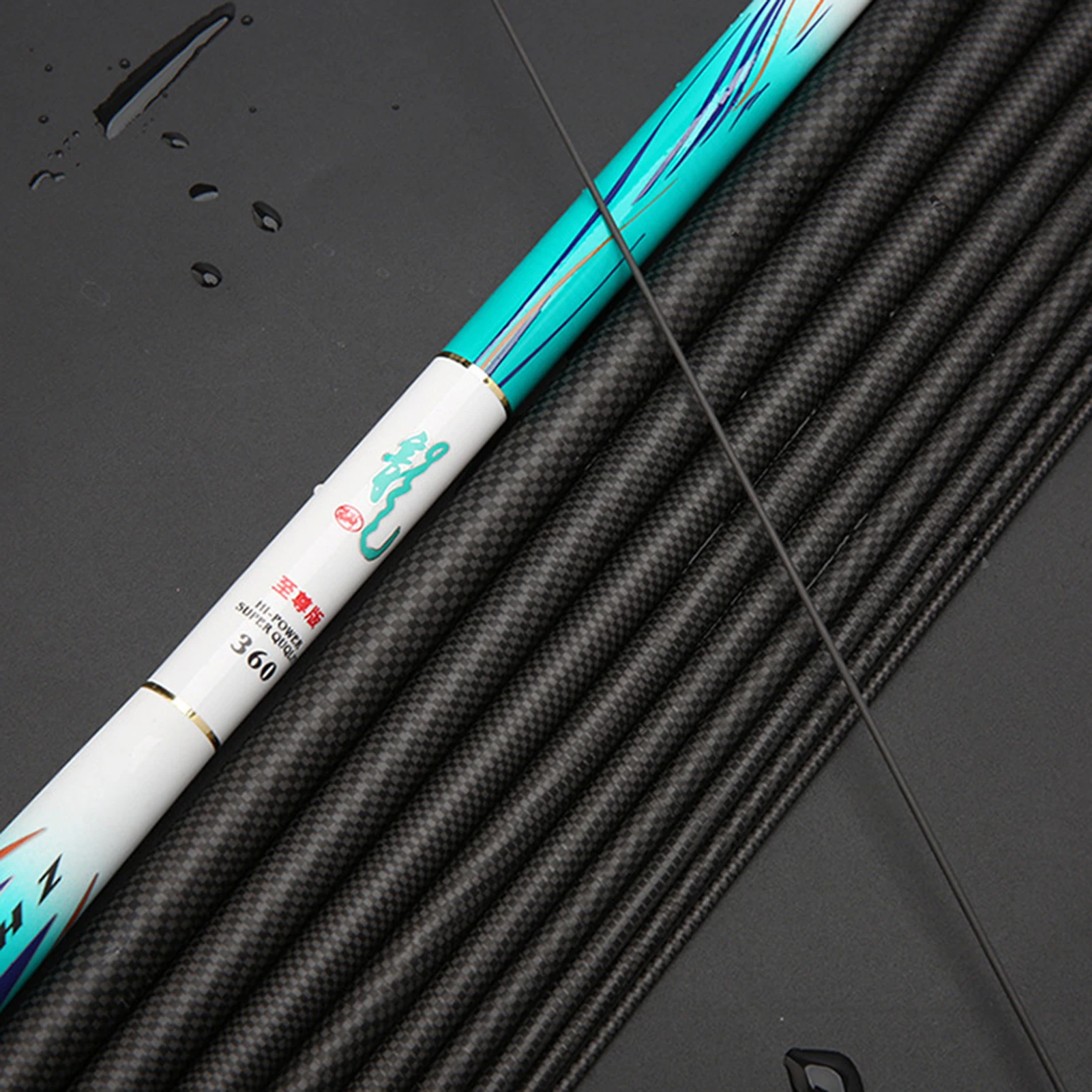 3. Enchufe frontal fino y Punta de varilla fuerte: la varilla está hecha de un enchufe frontal apretado, que protege eficazmente la Junta interna de la varilla, y la punta de la varilla está hecha de cuerda de punta de varilla de alta potencia, que tiene una fuerte fuerza de tracción y puede lidiar fácilmente con peces grandes.