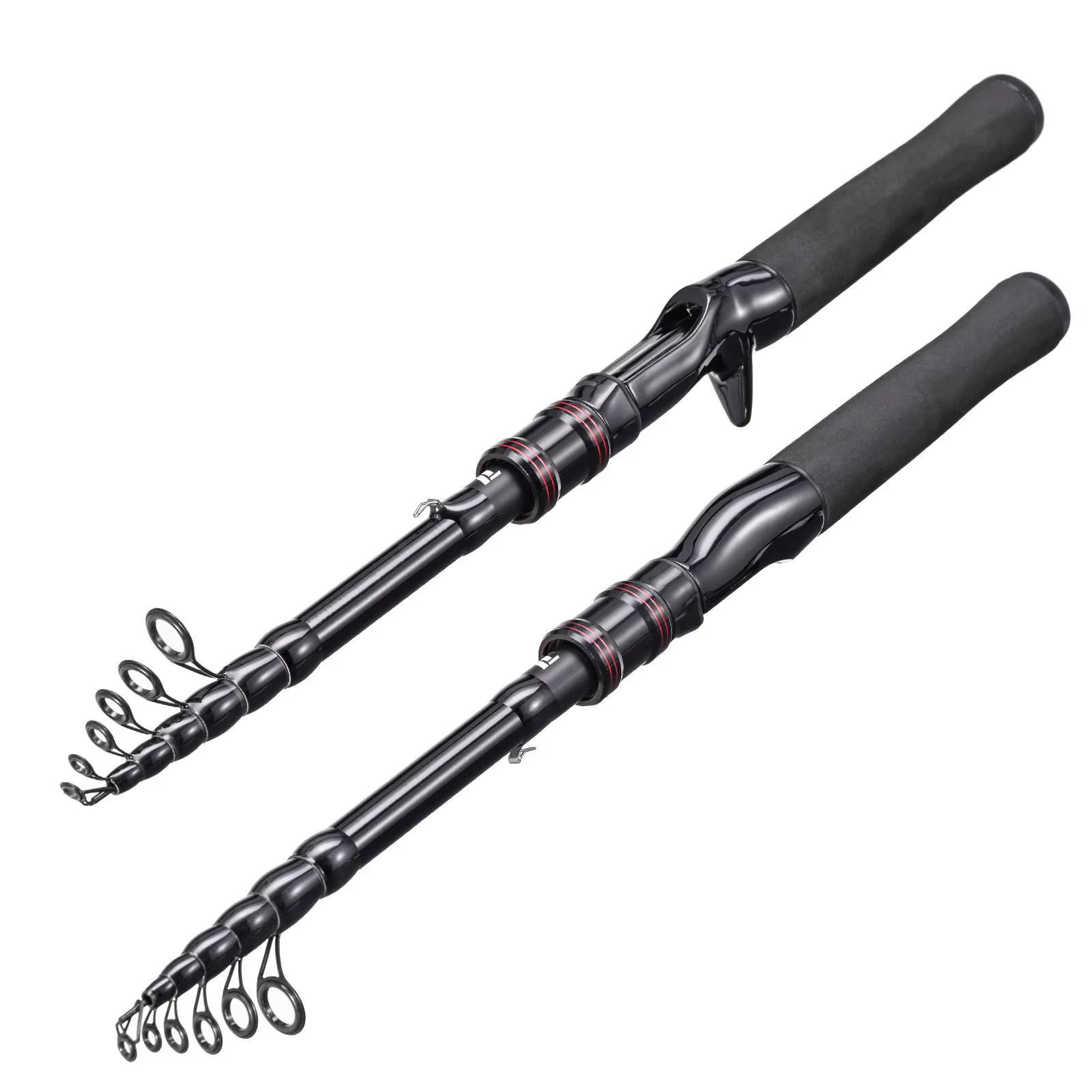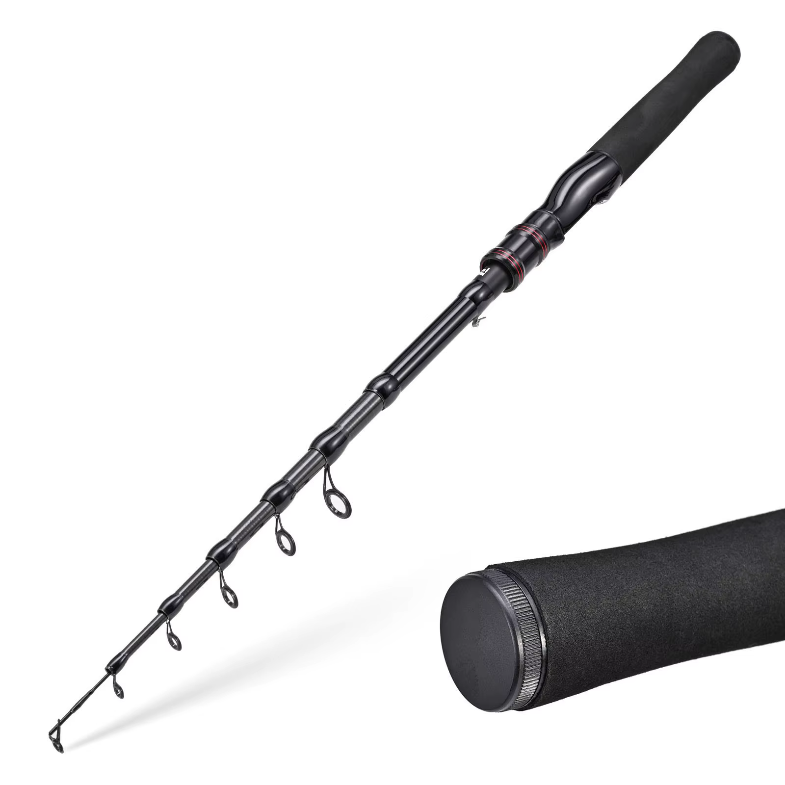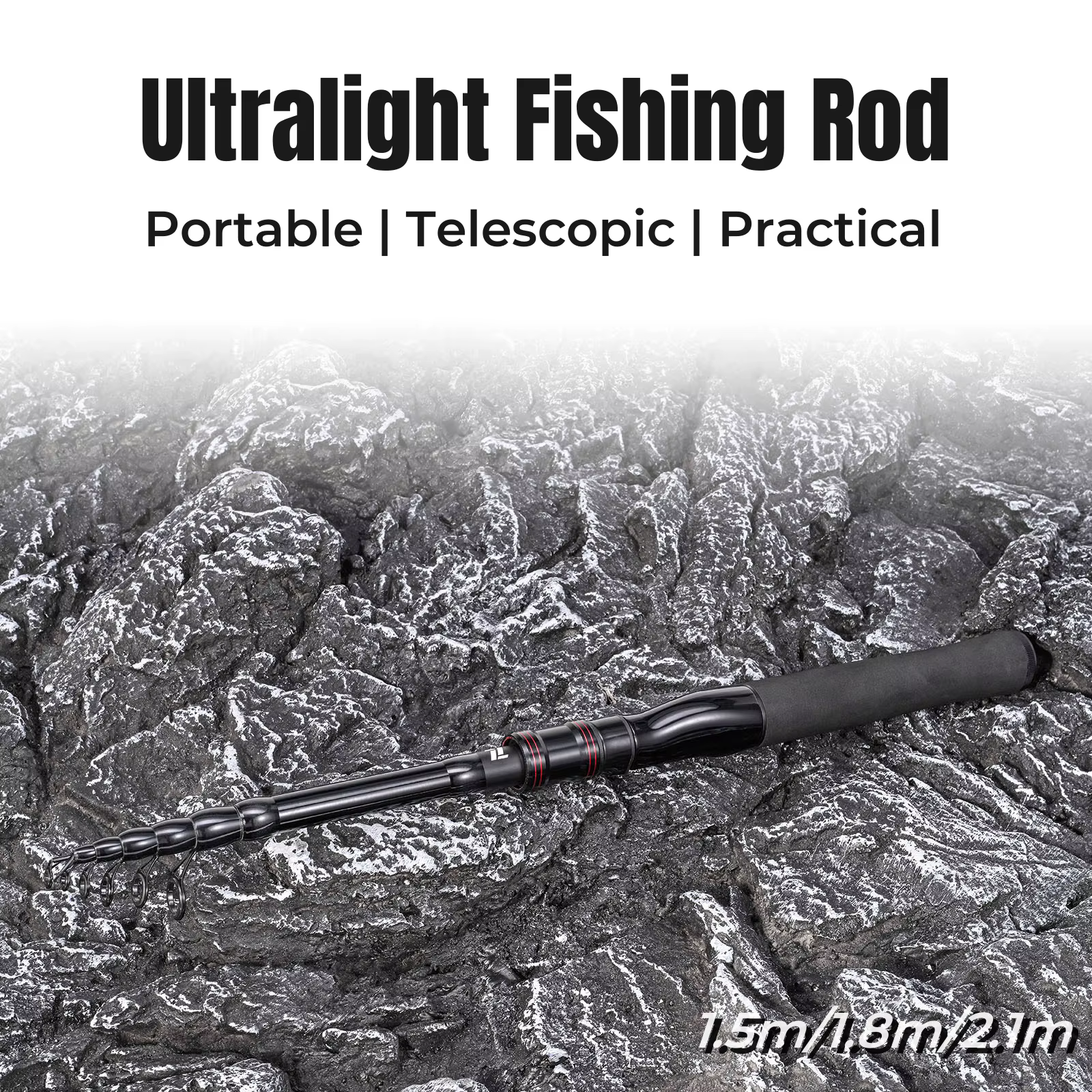 Caña de pescar telescópica portátil de fibra de carbono, ultraligera, corta, para agua dulce y salada, 1,5/1,8/2,1 m