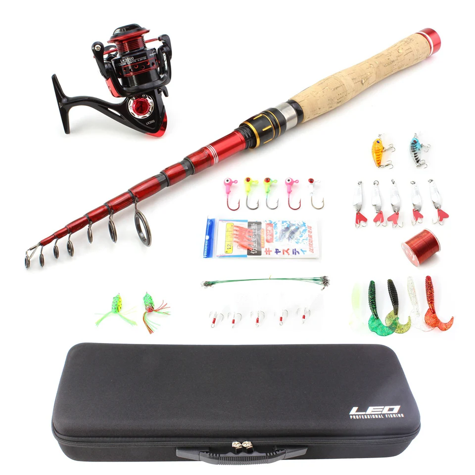Caña de pescar telescópica portátil, juego de carrete y bolsa de línea de cebo, accesorios de pesca, 1,6 M, 1,8 M, 2,1 M, 2,4 m, 2,7 M, nueva