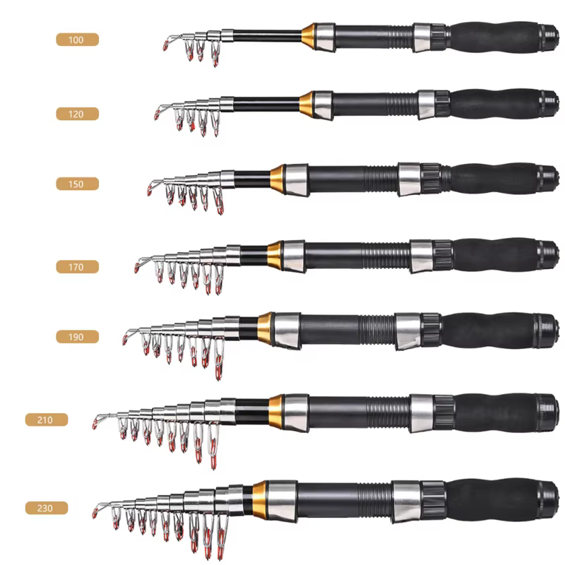 Caña de pescar telescópica portátil 1m, 1,2 m, 1,5 m, 1,7 m, 1,9 m, 2,1 m, caña giratoria de bolsillo súper corta