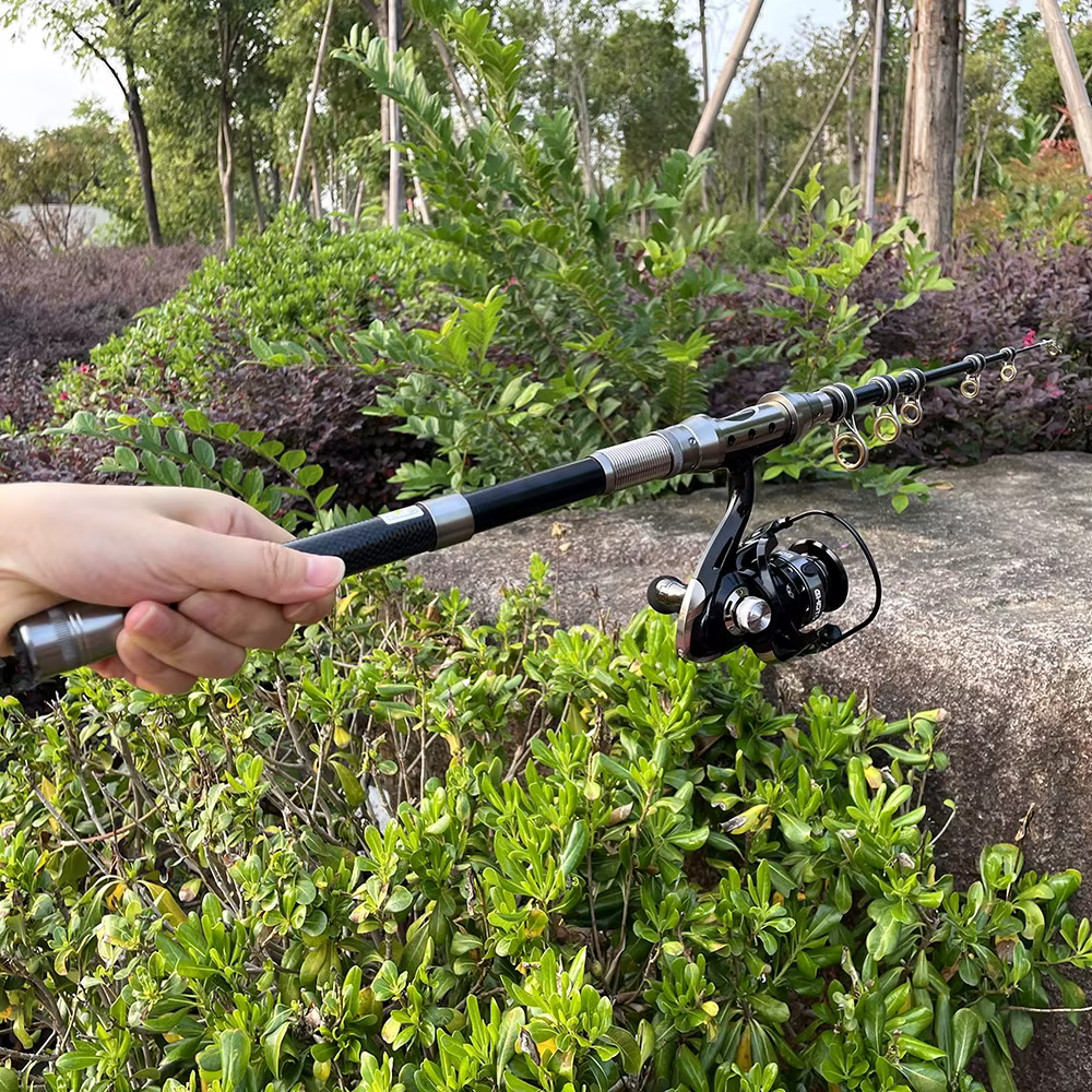 3. Caña de pescar de longitud ajustable para situaciones donde el equipo de pesca de tamaño completo es incómodo.