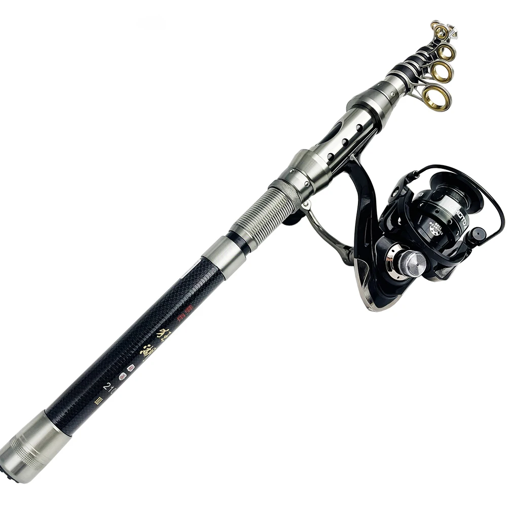 Combo de caña de pescar de mar telescópica y carrete de pesca giratorio