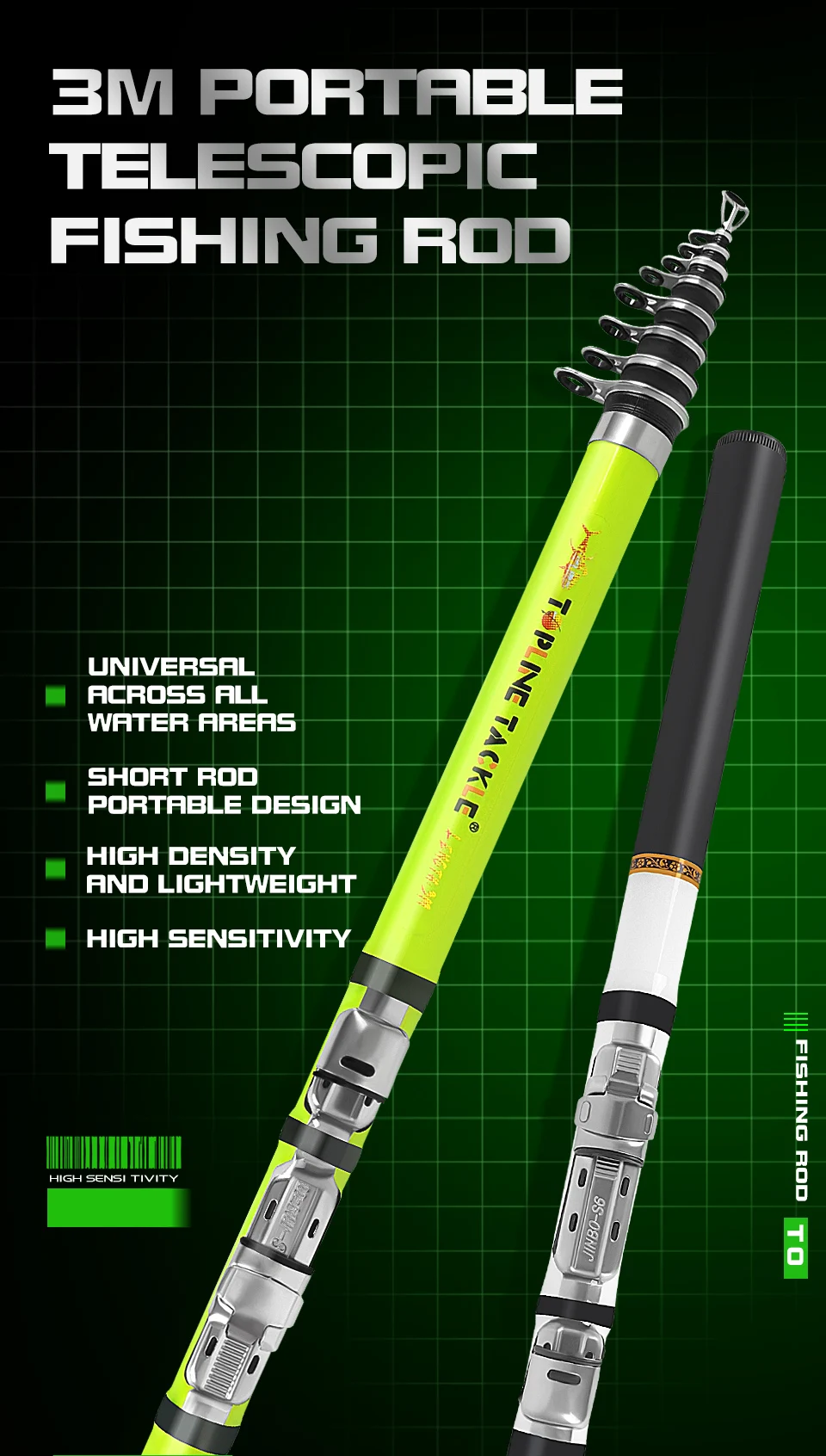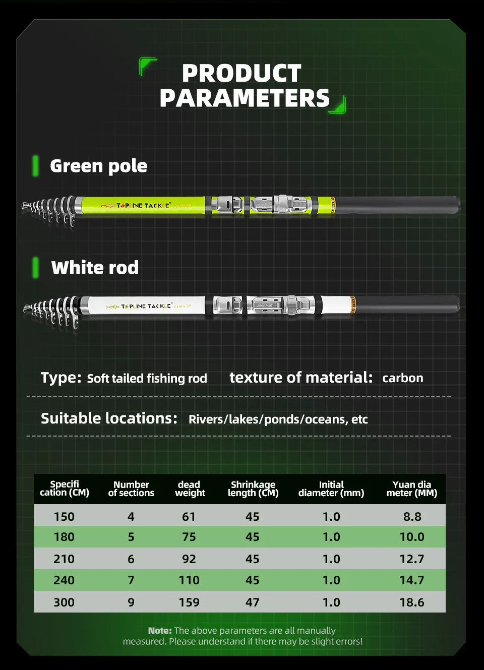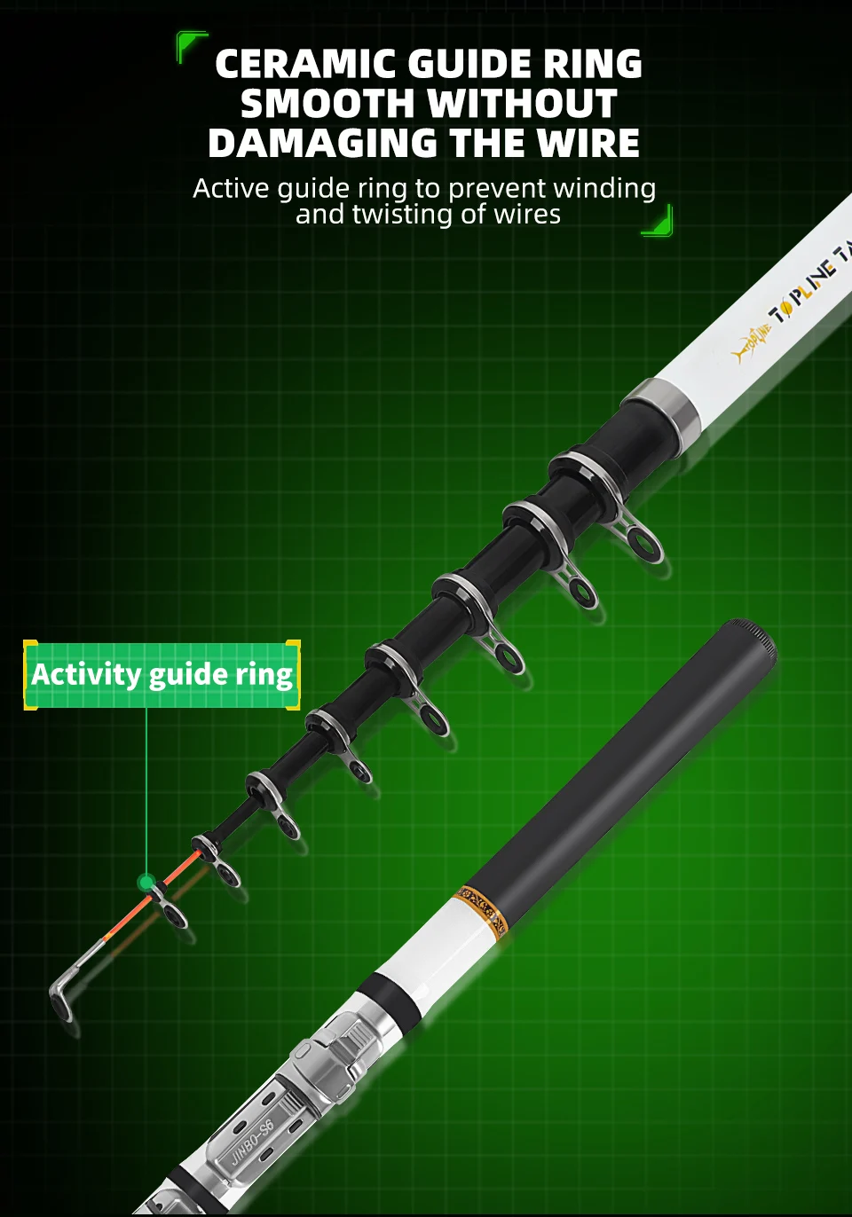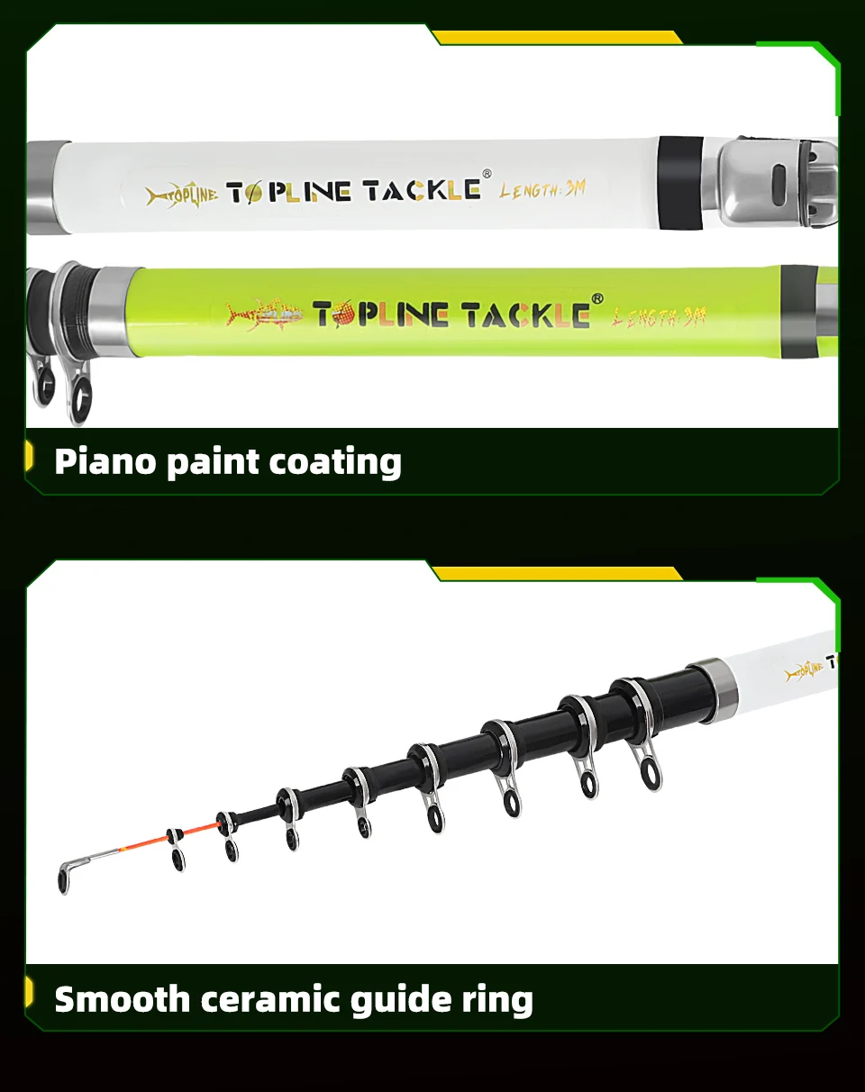 • Hecho de fibra de carbono para ultraligero y durabilidad:La caña está hecha de fibra de carbono, lo que la hace ultraligera y duradera, perfecta para largos viajes de pesca y batallas con peces grandes.
