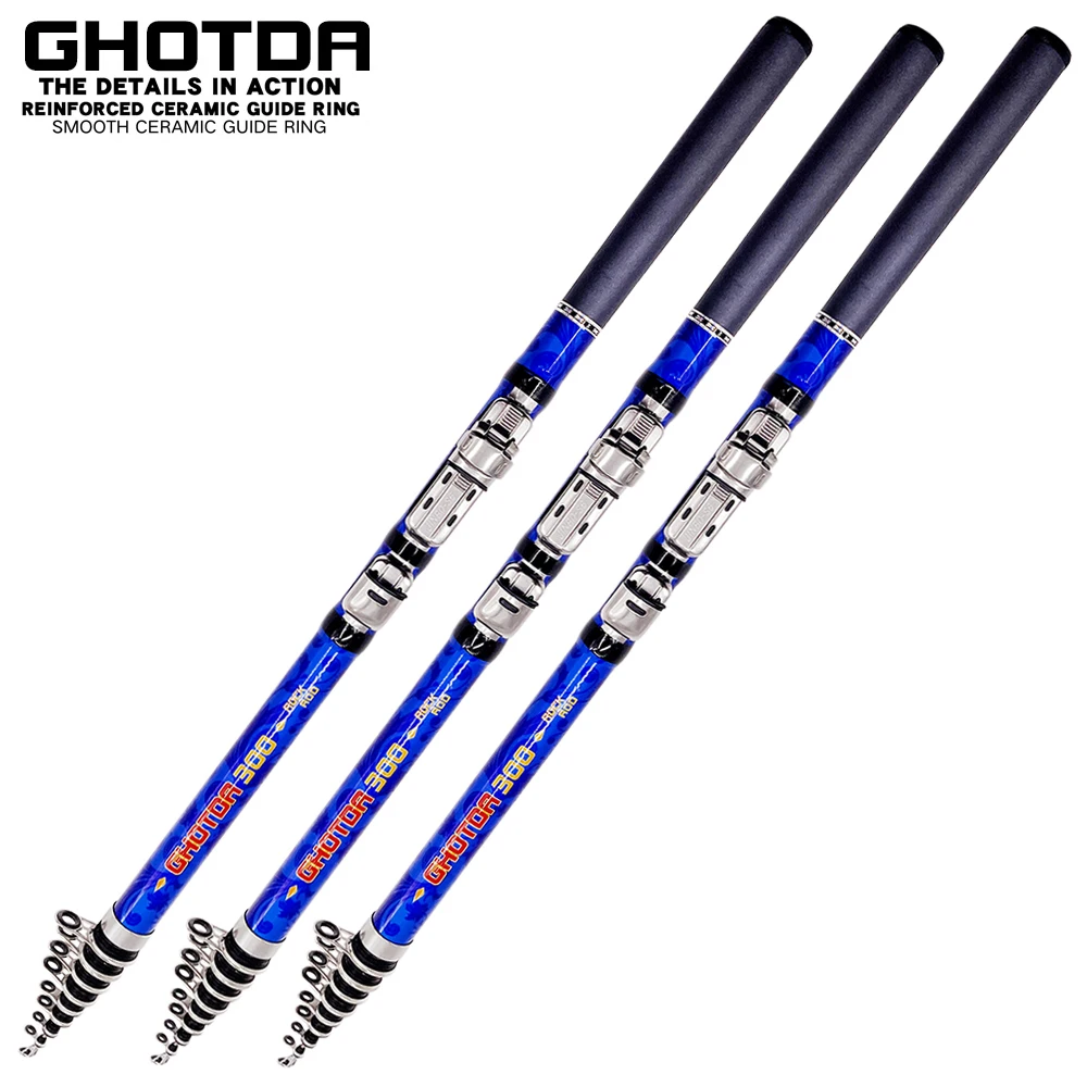 Caña de pescar telescópica para Roca, alimentador giratorio de carpa con mosca, fibra de carbono, para trucha, 3M, 2,7 M, 2,4 M, 2,1 M, 1,8 M, 1,5 M, Mini asiento de carrete de viaje