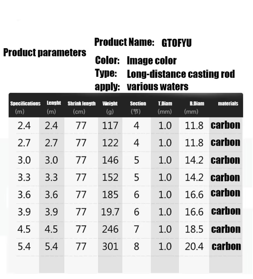 Caña de pescar telescópica en roca, cañas de fibra de carbono de alta densidad, portátiles con bolsa de almacenamiento, cañas de pescar nuevas de 2,4-5,4 m 30T