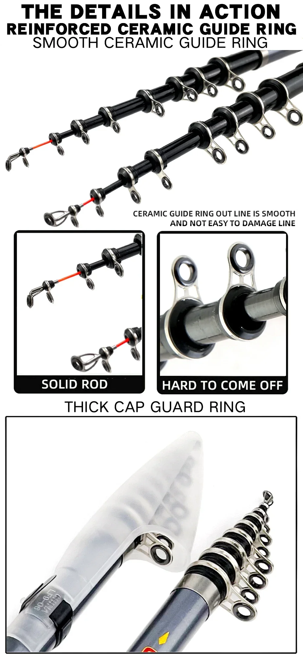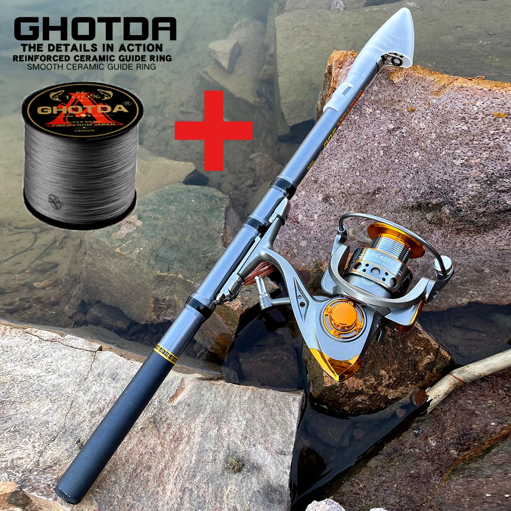 Caña de pescar telescópica de roca corta GHOTDA 1,5-3M y carrete giratorio serie 1000-3000 arrastre máximo 8kg Pesca con combinación de línea trenzada