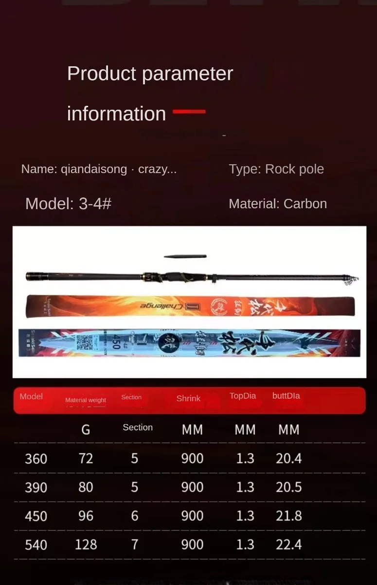 Caña de pescar telescópica súper dura ultraligera importada de Japón 3,6 M 3,9 M 4,5 M 5,4 M 4 # Caña de pescar giratoria oceánica de alto carbono