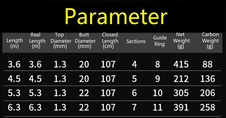 4. Las cañas de pescar 3 # y 5 # tienen el mismo parámetro.