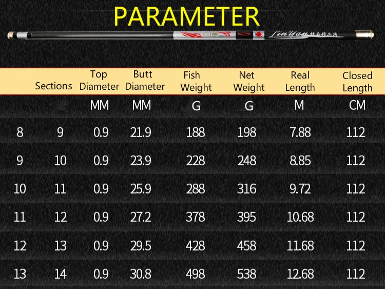 Longitud: 8-13m Longitud cerrada: 112 cm
