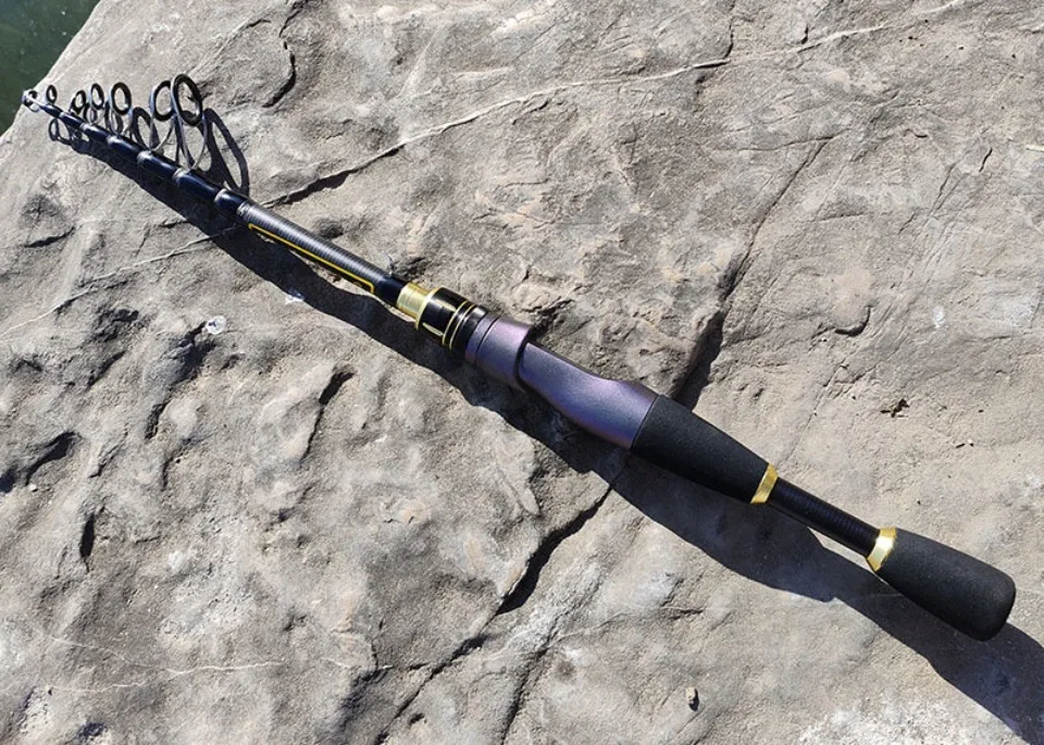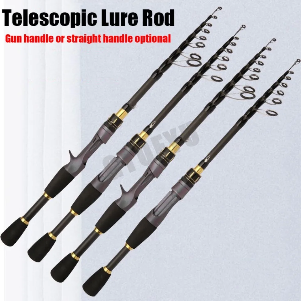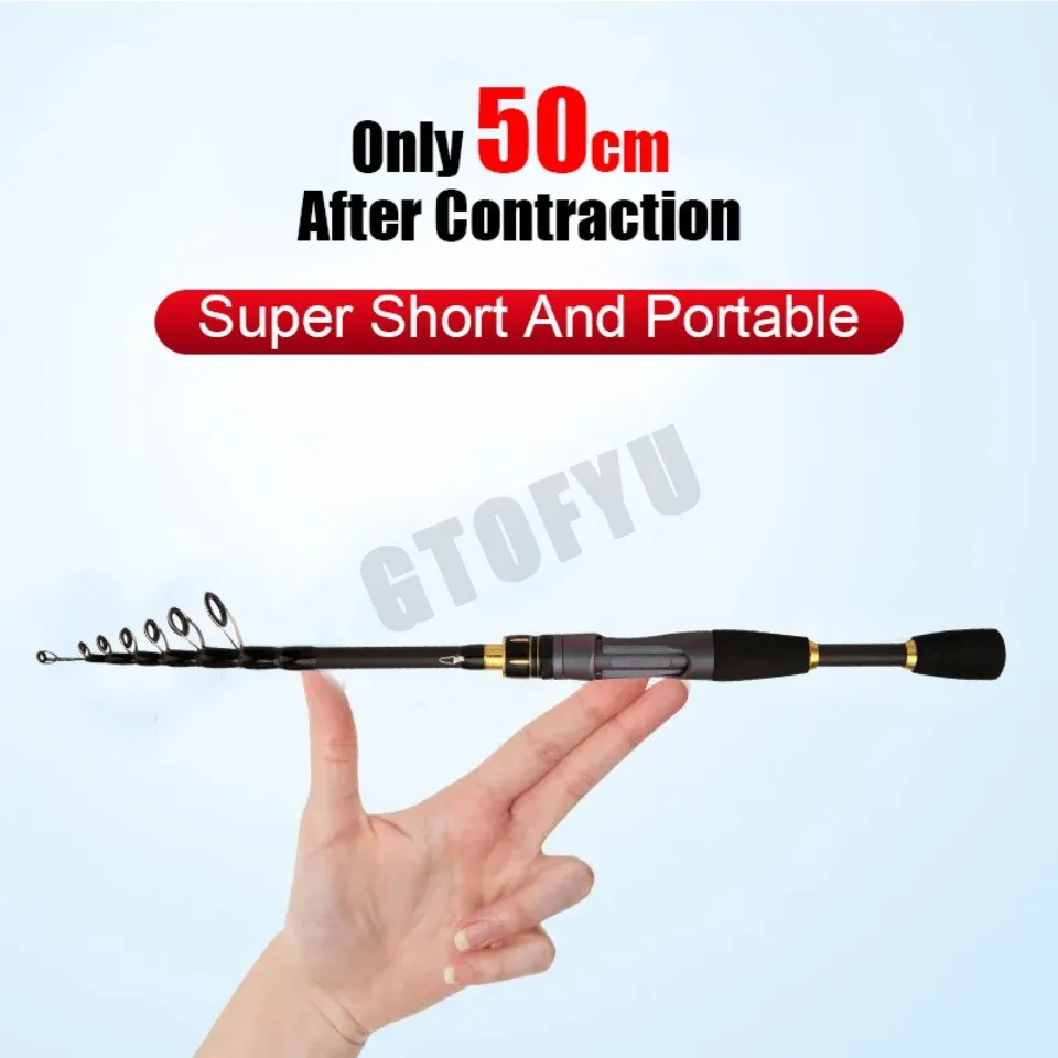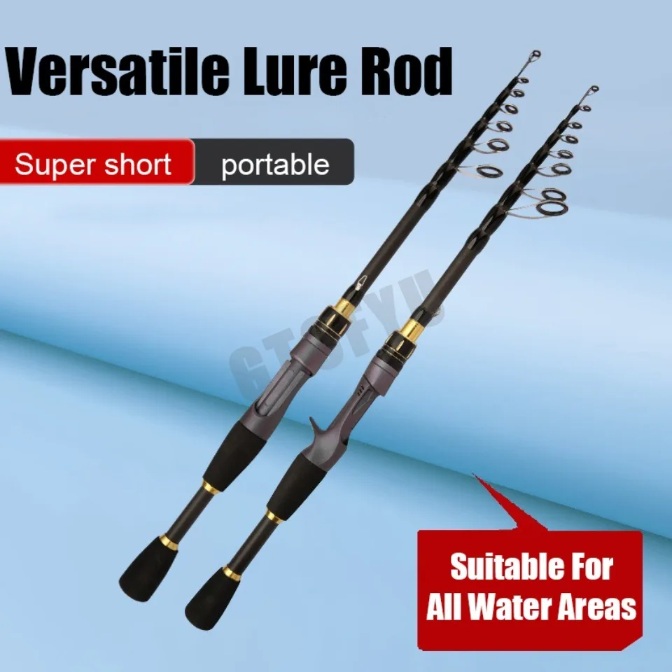 Caña de pescar telescópica ultracorta, caña de fundición giratoria multifunción, caña de pescar de alto carbono, caña de pescar antideslizante duradera