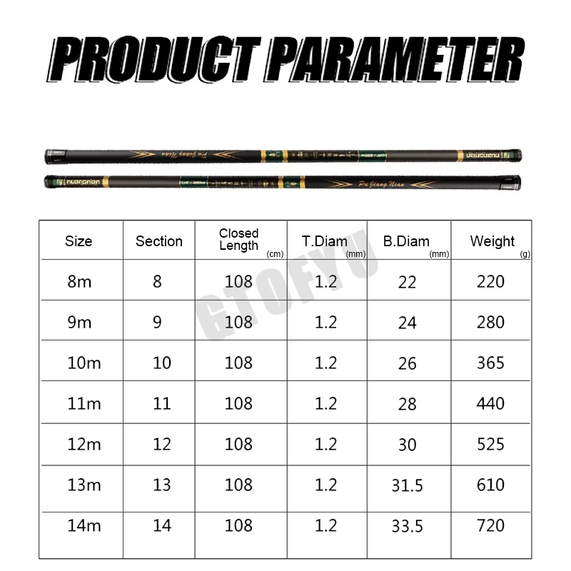 Caña de pescar telescópica ultraligera de 8m, 9m, 10m, 11m, 12m, 13m, 14m, caña de pescar de carbono 46T de muy alta calidad