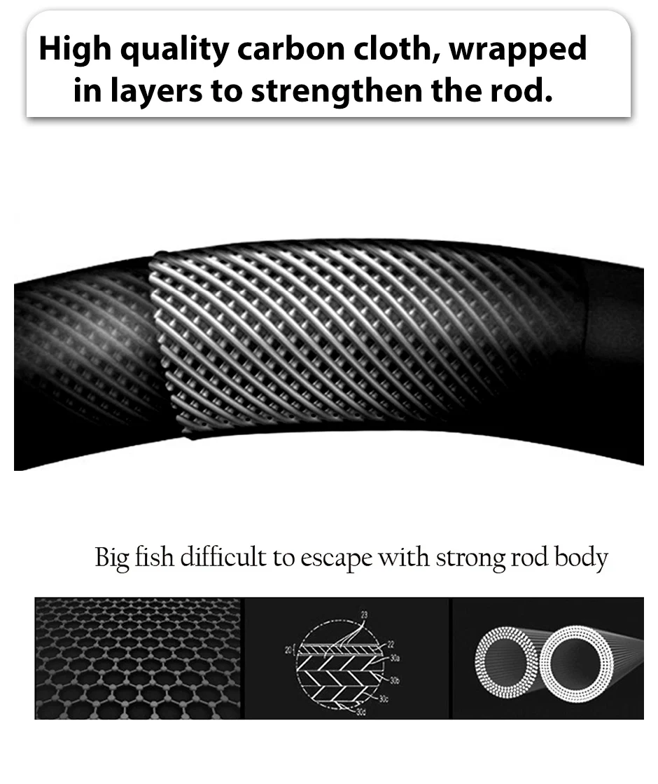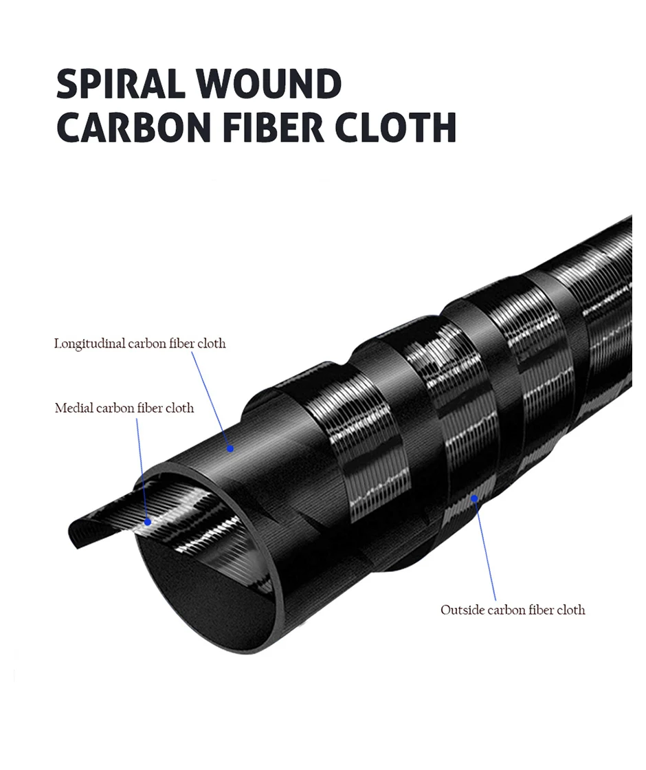 5. Paño de carbono de alta calidad, envuelto en capas para fortalecer la varilla.