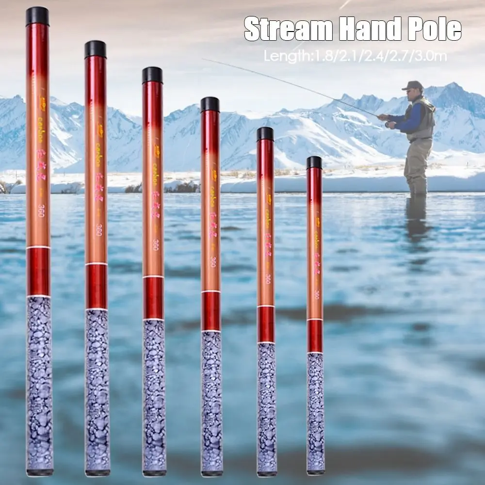 Tipo: caña de pescar telescópica Material:FRP Longitud: 1,8/2,1/2,4/2,7/3,0 M Longitud de contracción: 41 cm Color: como muestra la imagen Adecuado para: Arroyo, río, lago, peces objetivo de estanque de Depósito: carpa, besugo, tilapia y otros peces de agua dulce Características: 1. La longitud de contracción es de aproximadamente 41 cm, y es portátil para el transporte. 2. Recubrimiento avanzado general. 3. Mango tejido, suave y cómodo, cuando se sujeta durante mucho tiempo. 4. El cuerpo de la varilla es adecuado para tela de carbono de alta calidad, 45 tejidos cruzados. Curvatura mejorada para evitar roturas. Medición manual, se permiten pequeños errores. El paquete incluye: 1 * caña de pescar