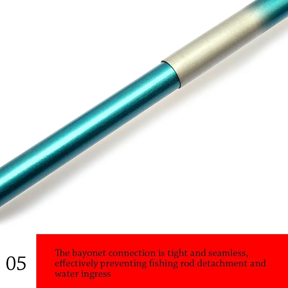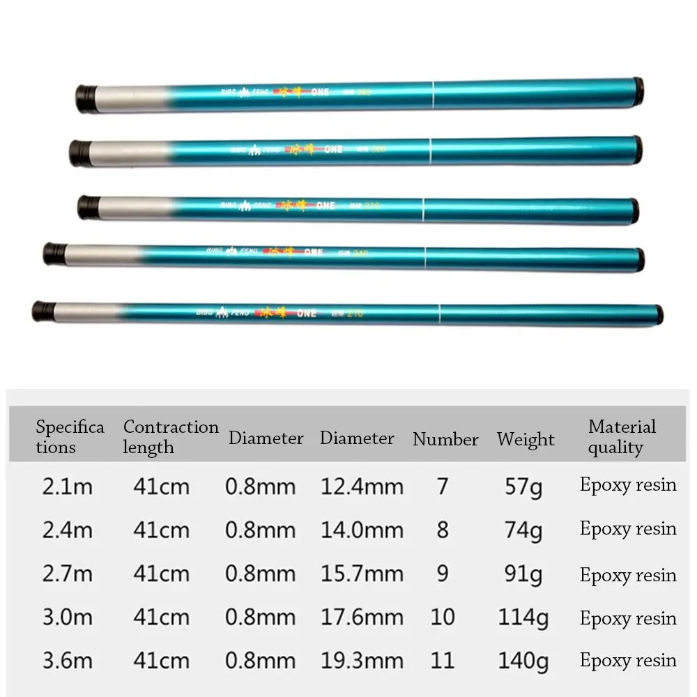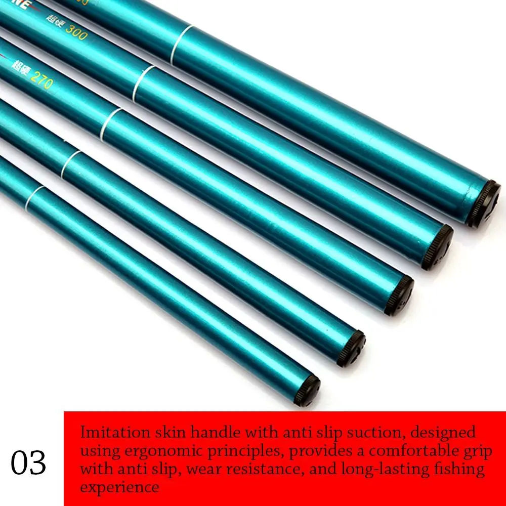 Tipo: caña de pescar telescópica Material:FRP Longitud: 1,5/1,8/2,1/2,4/2,7/3,0/3,6 m Longitud de contracción: 41 cm Color: como muestra la imagen Adecuado para: Stream, río, lago, estanque de depósito Peces objetivo: pez carpa, besugo, tilapia y otros peces de agua dulce Características: 1. La longitud de contracción es de aproximadamente 41 cm, y es portátil para el transporte. 2. Recubrimiento avanzado general. 3. Mango tejido, suave y cómodo, cuando se sujeta durante mucho tiempo. 4. El cuerpo de la varilla es adecuado para tela de carbono de alta calidad, tejido cruzado. Curvatura mejorada para evitar roturas. El paquete incluye: 1 * caña de pescar. Nota: 1. Consulte la medición. Se permiten pequeños errores de medición dentro del rango normal. 2. Puede haber una ligera diferencia de color debido al monitor, La Cámara u otros factores, consulte el producto real.