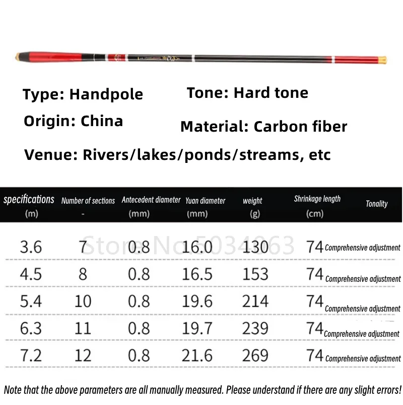 Caña de pescar telescópica ultraligera de fibra de carbono súper dura portátil para carpa de agua dulce poste de corriente 3,6 M 4,5 M 5,4 M 6.3M7.2M