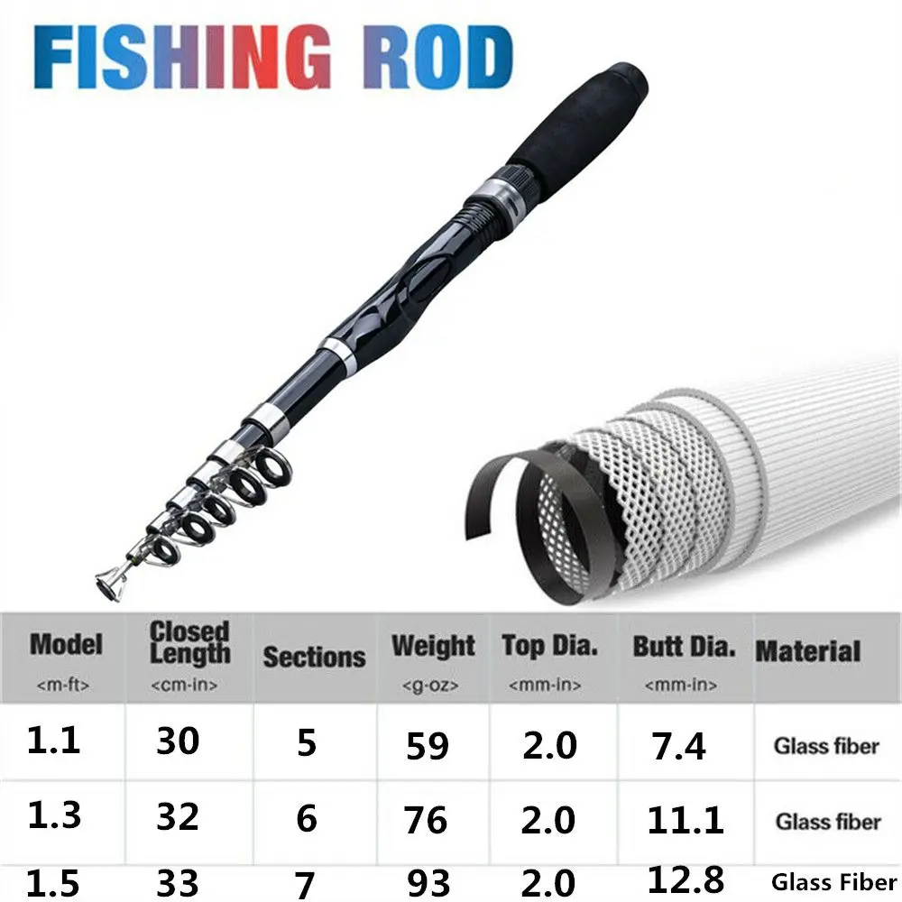 Caña de pescar de fibra de vidrio, ultraligera y resistente.