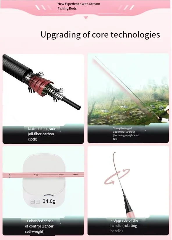 Parámetros del productoMaterial del producto: fibra de carbonoPolvo de color del productoTono del producto 37 tonosEscenas de pesca Corazones/lagos/réservoes/ríos/lagos, etc.