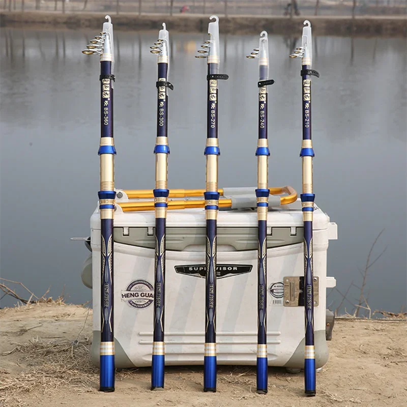 Caña de mano de alto carbono, caña de mar de carbono ultraligera y dura, caña de pescar de agua dulce, caña de pescar telescópica de 2,1/2,4/2,7/3,6/3,6 m