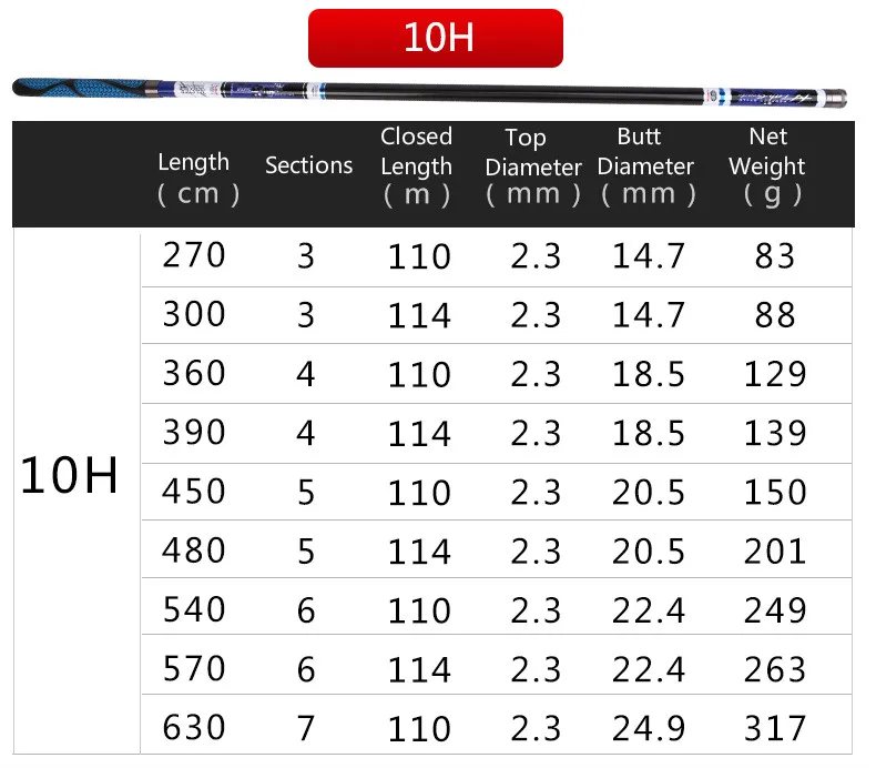 Longitud: 2,7-6,3 m Longitud cerrada: 110-114cm