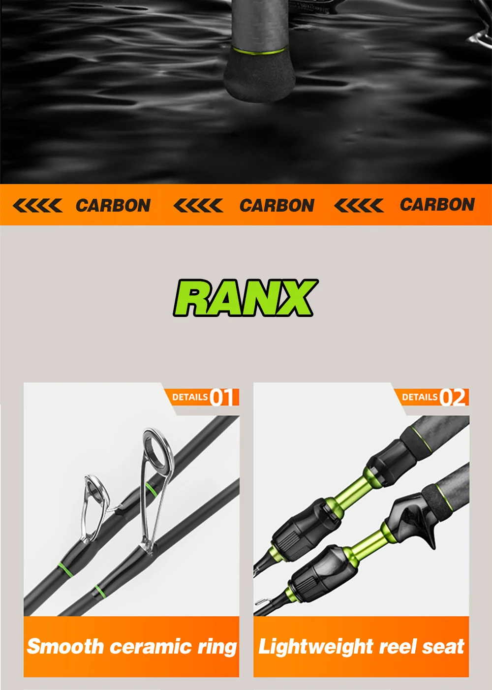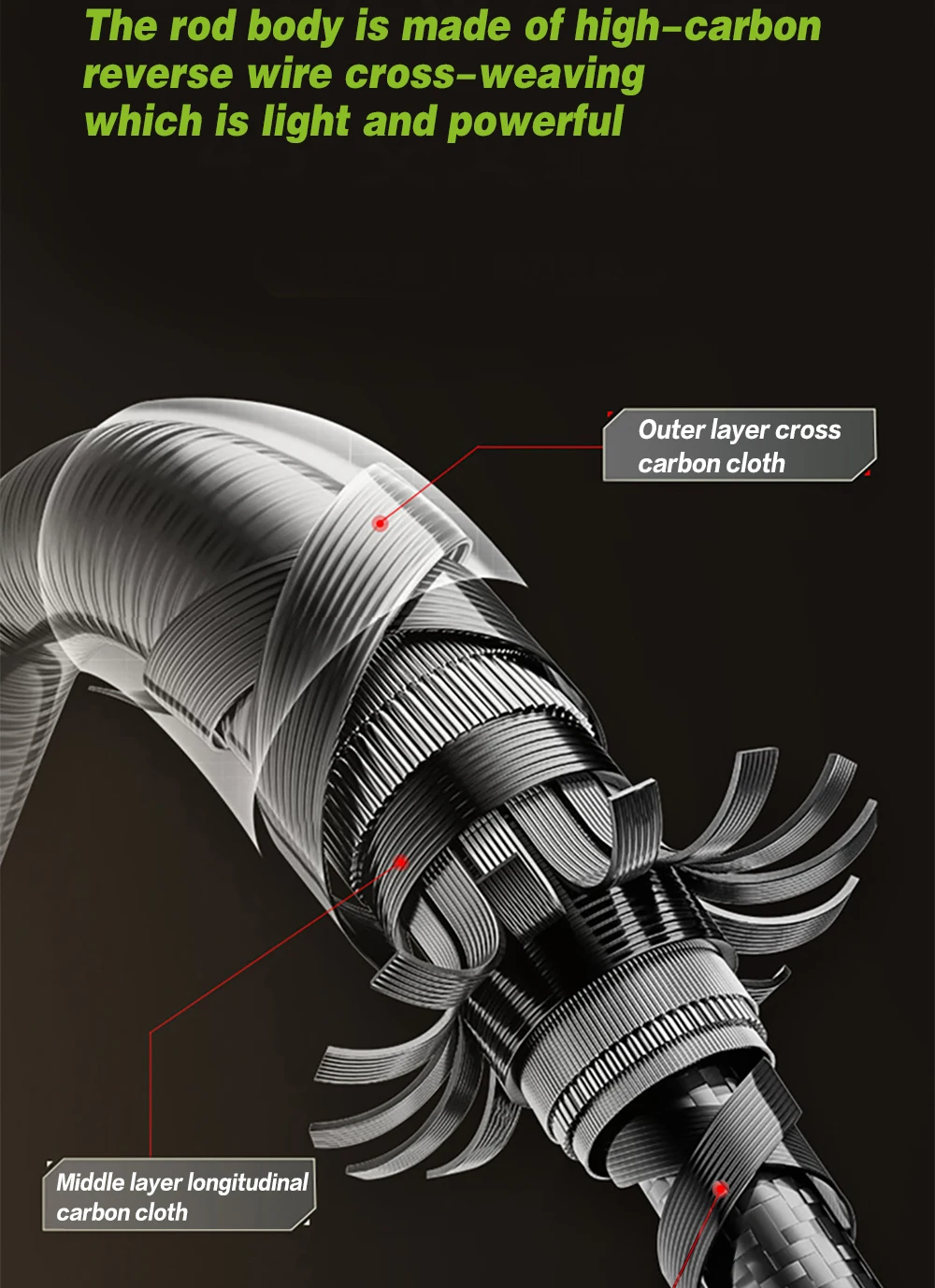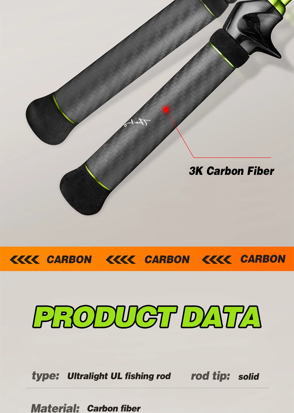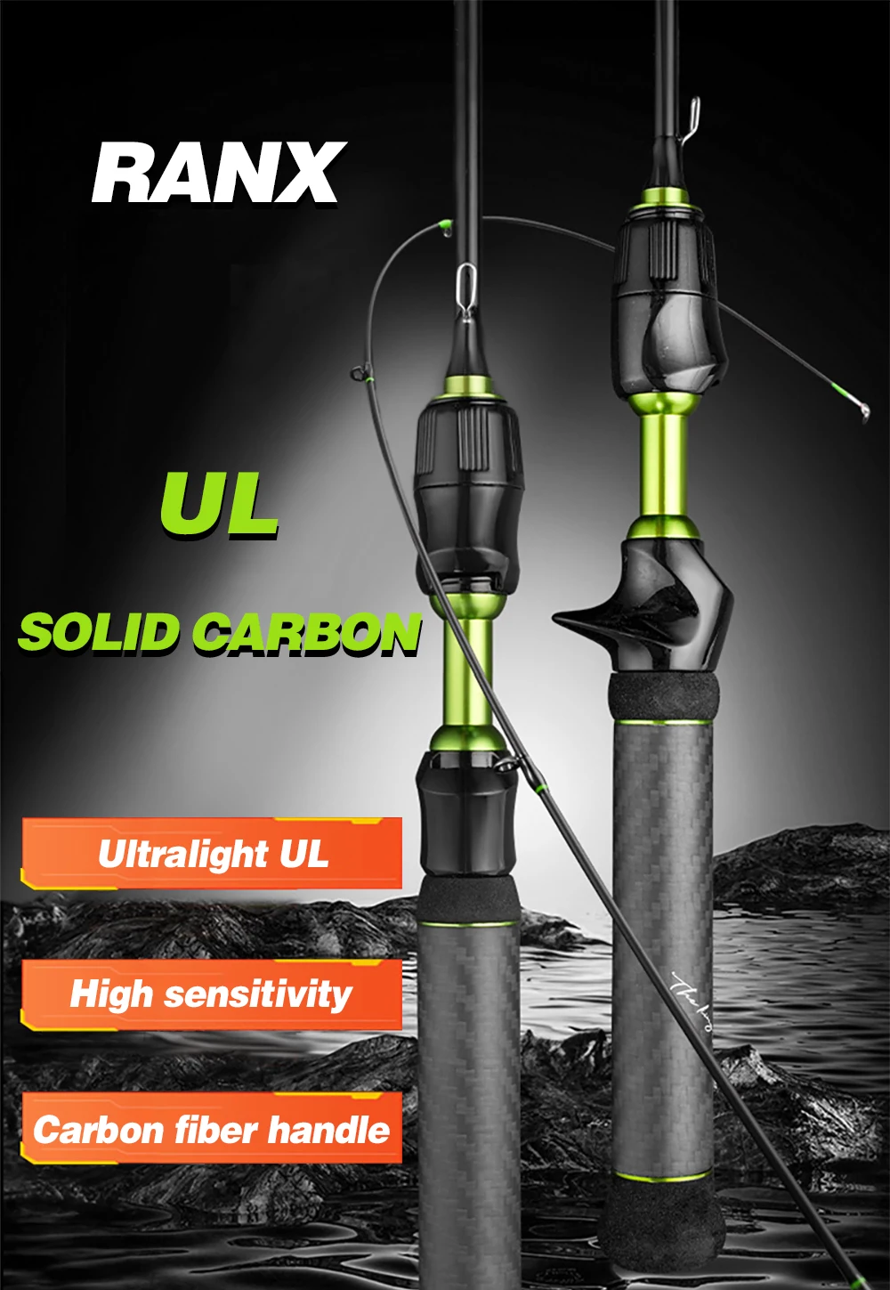 Caña de trucha rápida de carbono con punta sólida