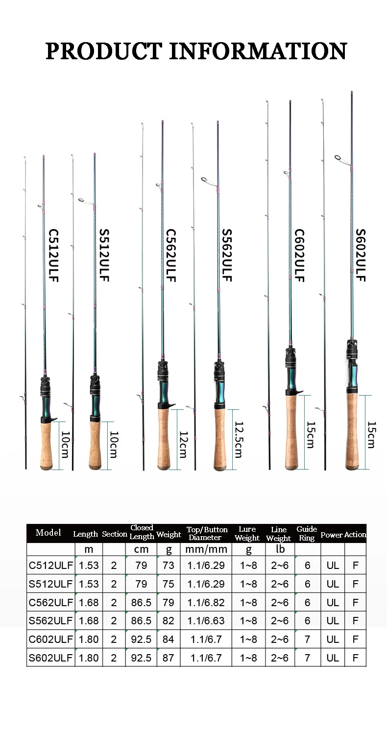 Longitud: 1,53 m| Longitud cerrada: 79 cm| Sección: 2| Acción: Rápida| Potencia: UL| Peso: 75 g| Diámetro superior: 1,1 mm| Diámetro inferior: 6,29 mm| Peso de la línea: 2-6 libras|Peso del señuelo: 1-8 g