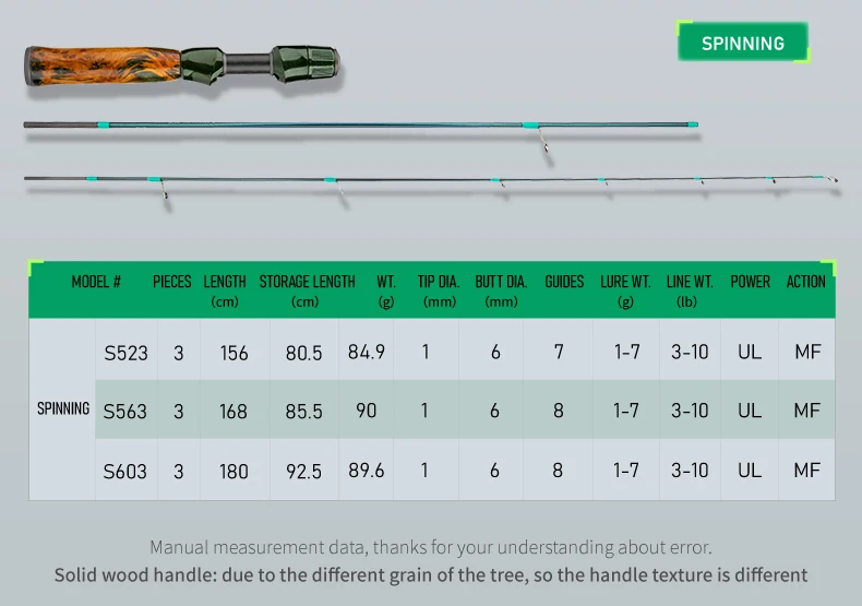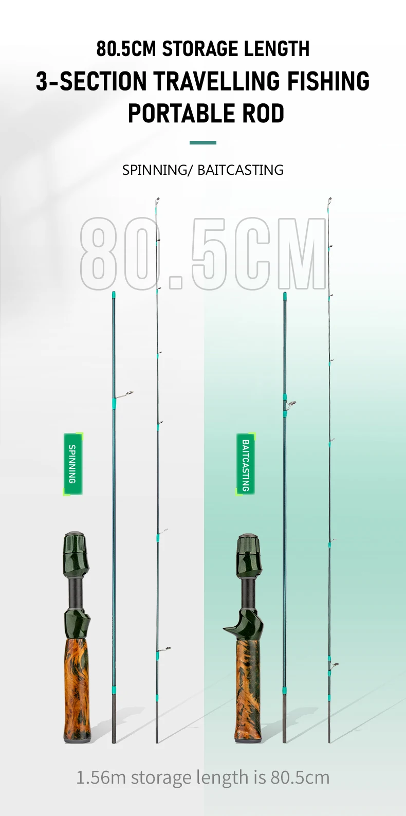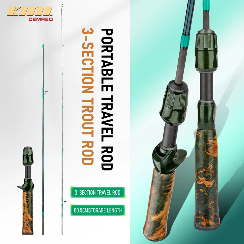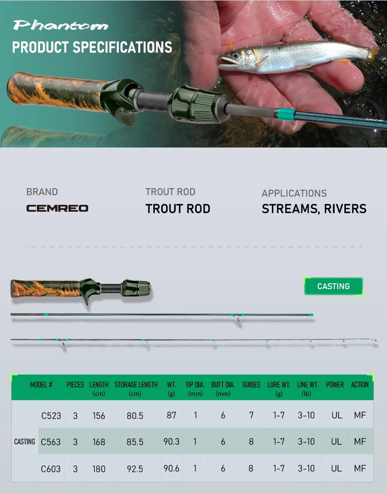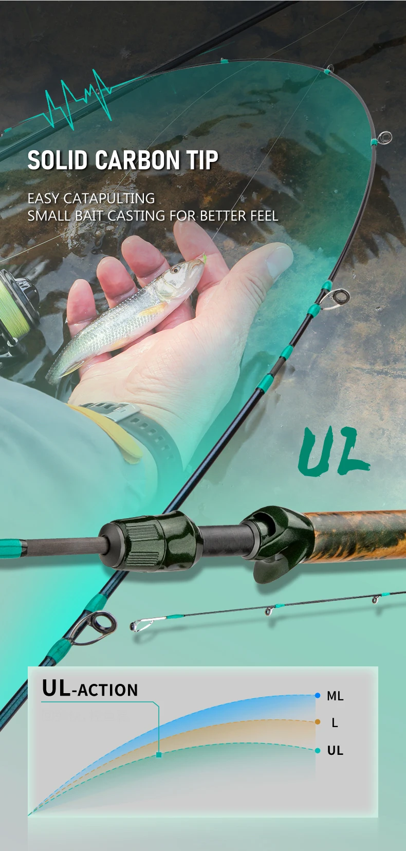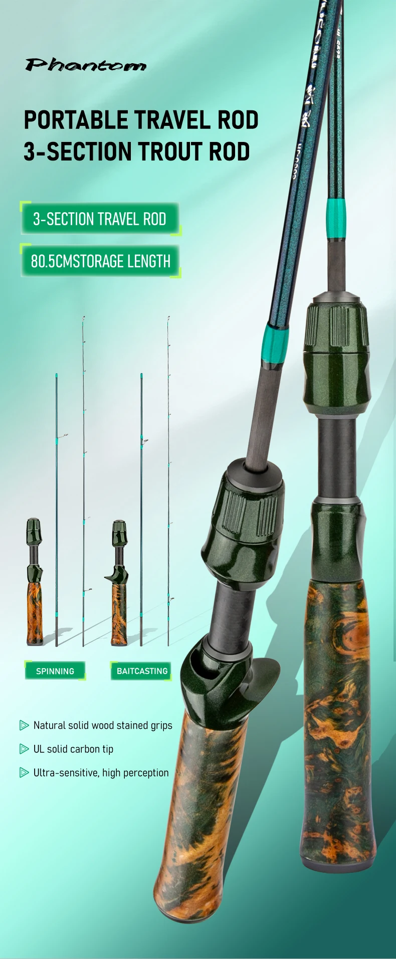 Caña de pescar de trucha profesional de 3 secciones, cebo giratorio, punta sólida, caña ligera de fibra de carbono, aparejos de pesca PHANTOM