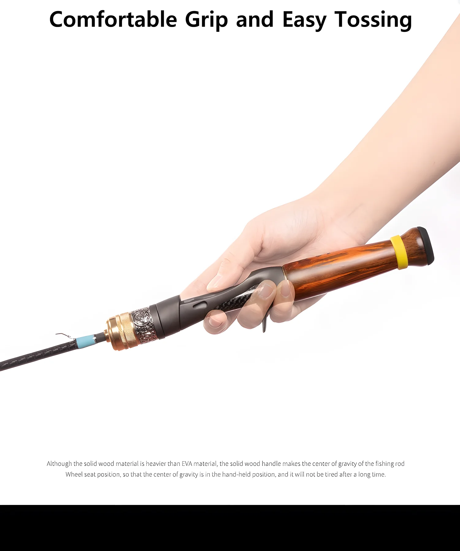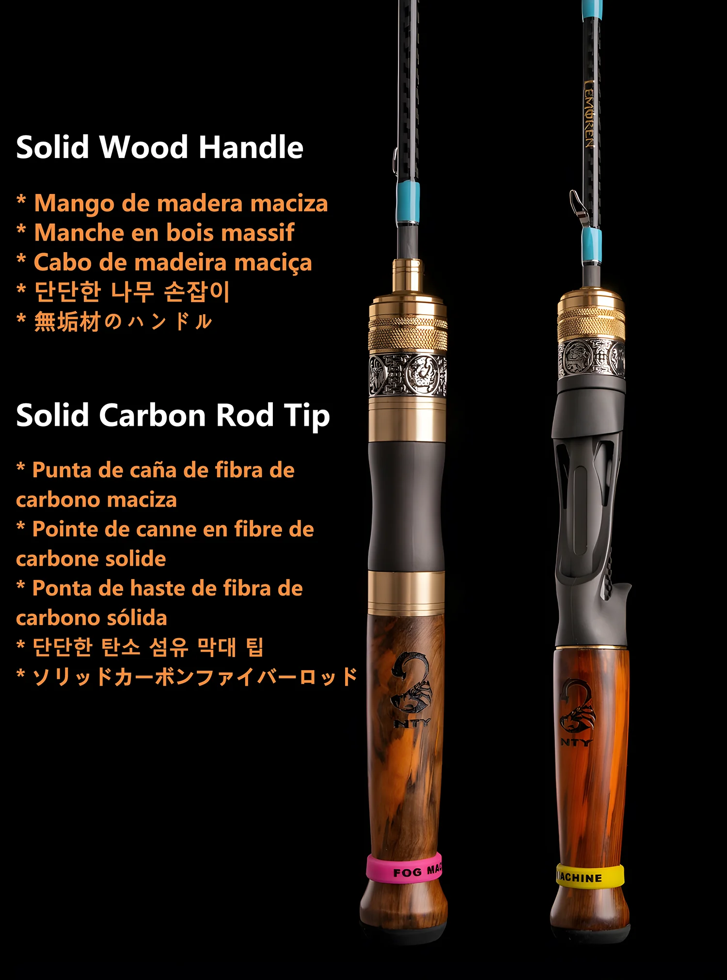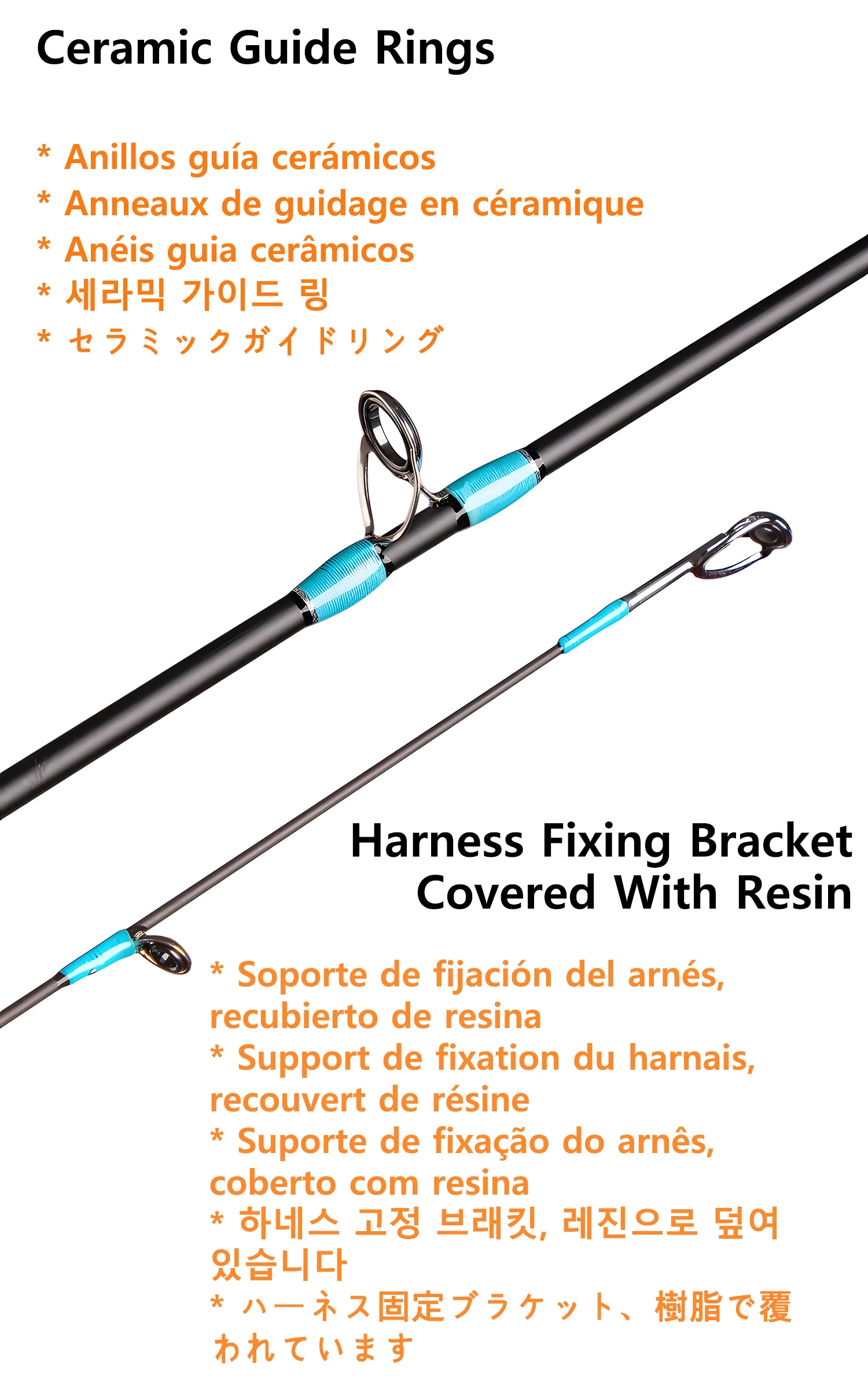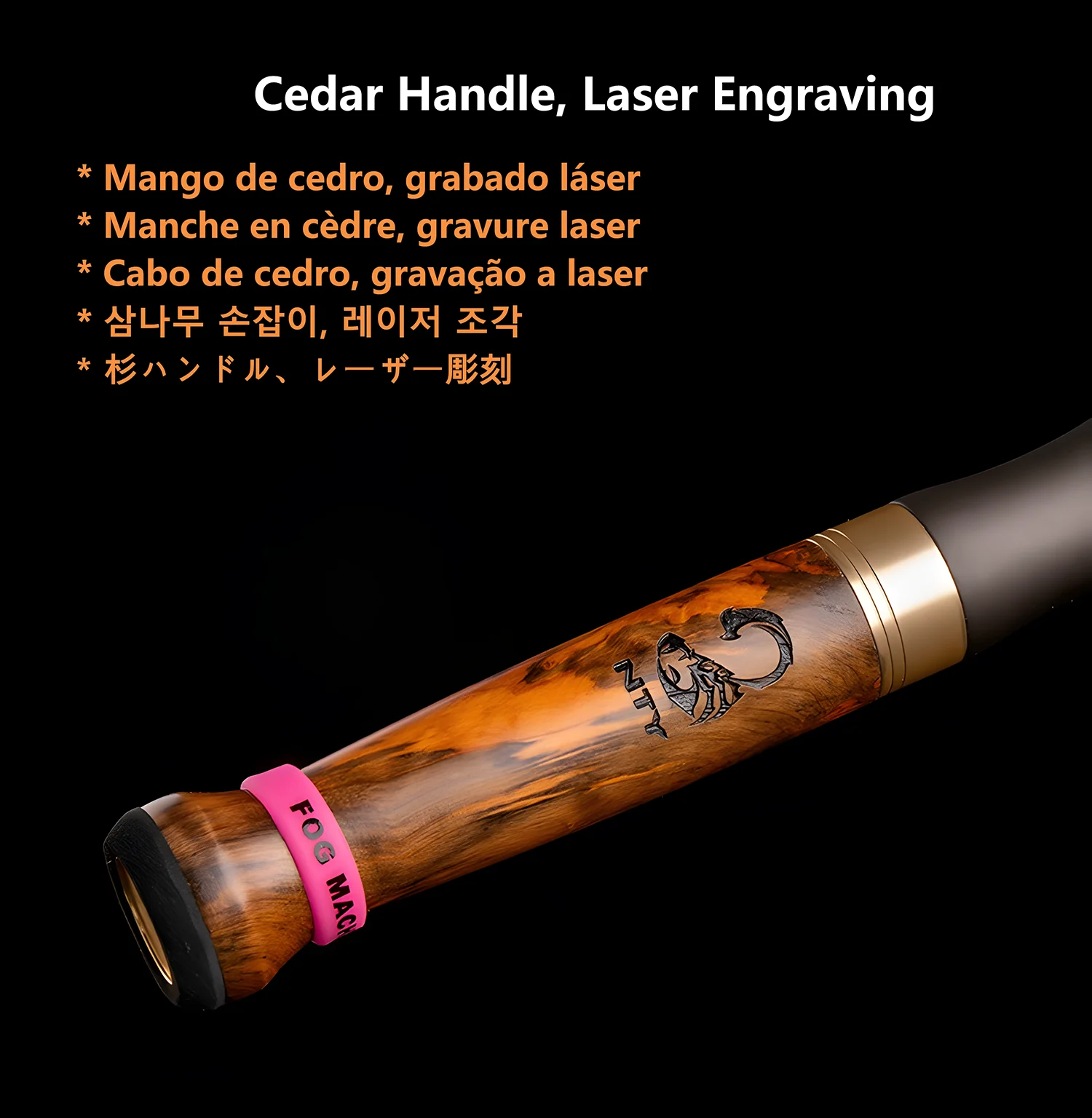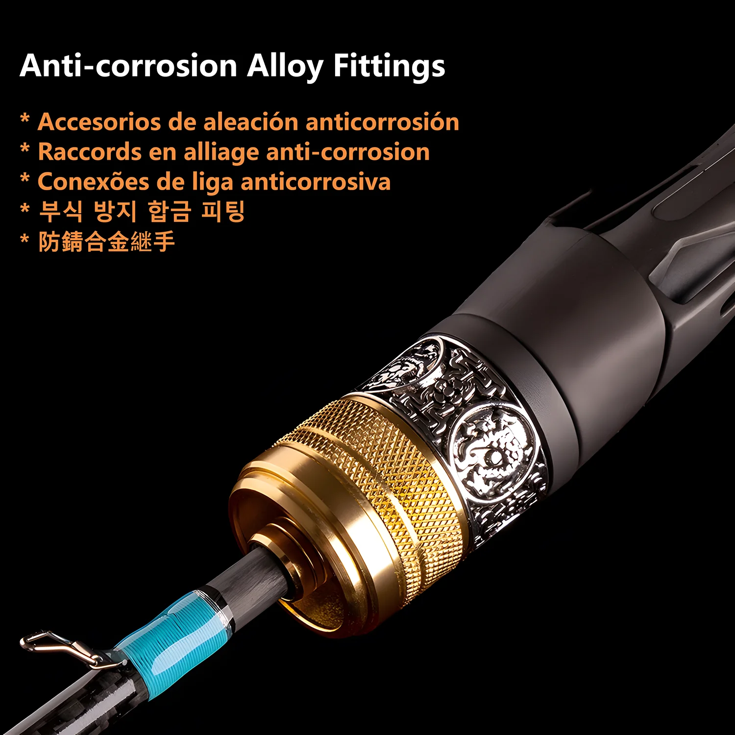* Material: cuerpo de varilla de fibra de carbono 30T, accesorios de aleación anticorrosión, mangos de madera de cedro