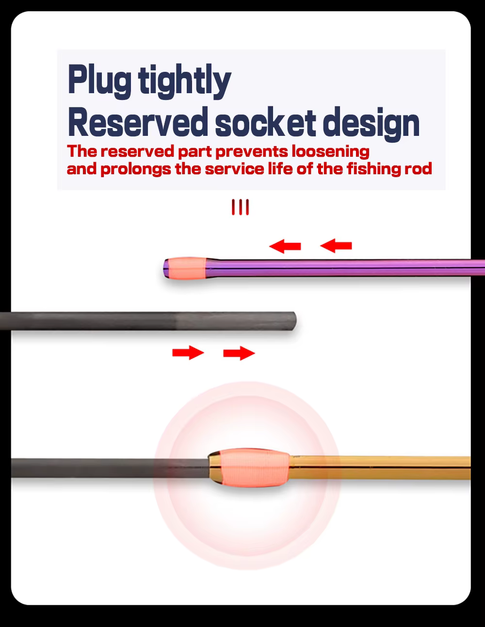 5. Diseño de enchufe invertido, enchufe firmemente y prolonga la vida útil de la caña de pescar.