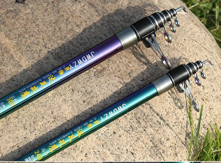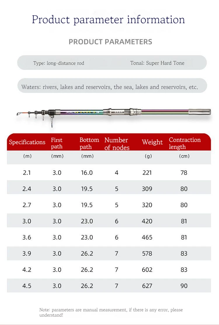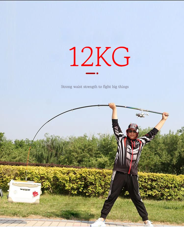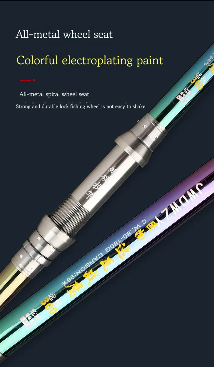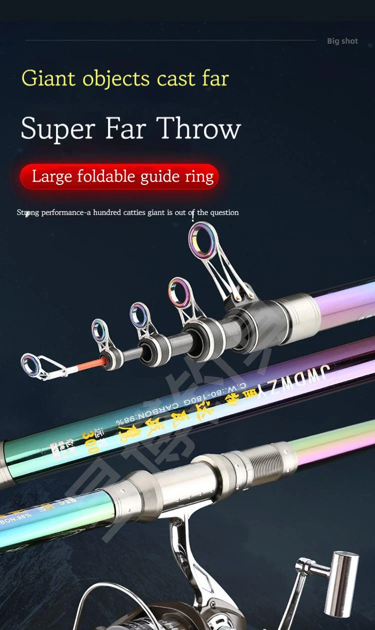 Caña de pescar Ultra dura de carbono para peces grandes, 2,1-4,5, caña de mar giratoria, varilla telescópica de surf, caña de lanzamiento lejano, peso de cebo 50-200g