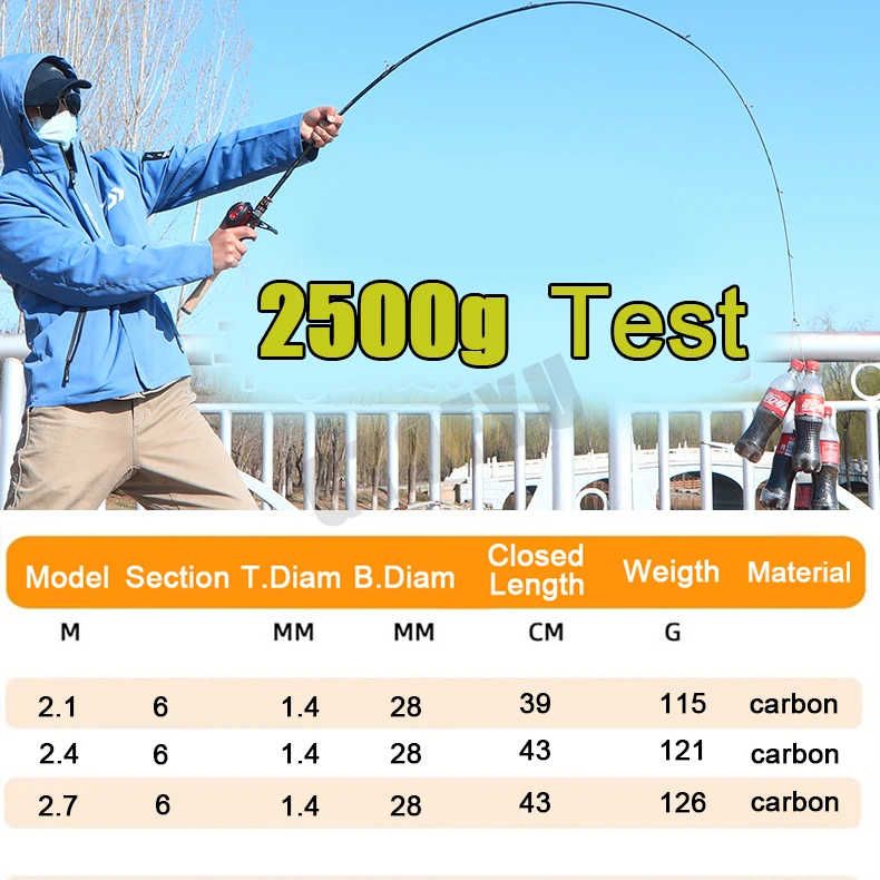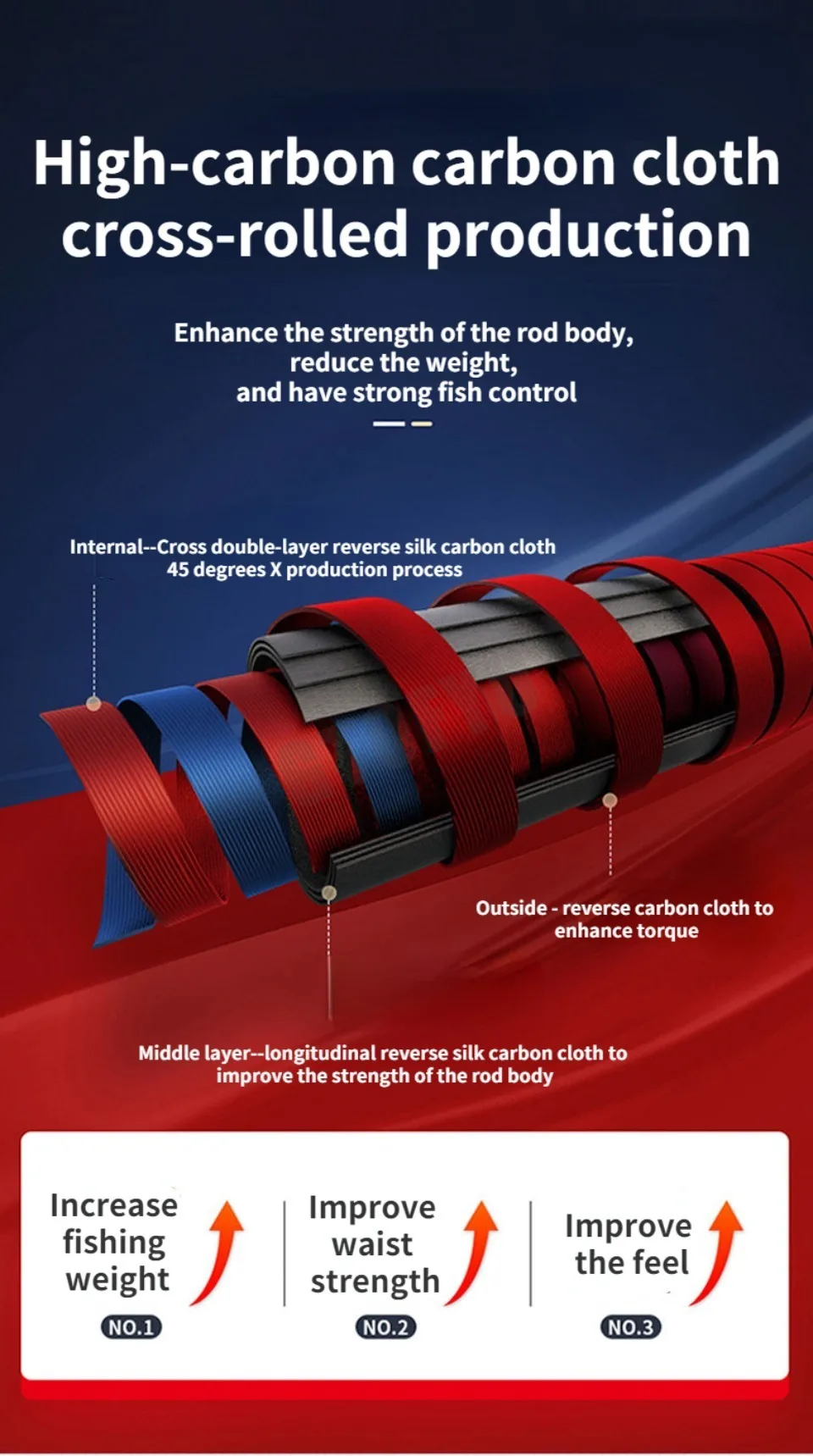 3. Esta caña de pescar está hecha de fibra de alto carbono, 90% mayor calidad que el mercado, fuerte y duradera.