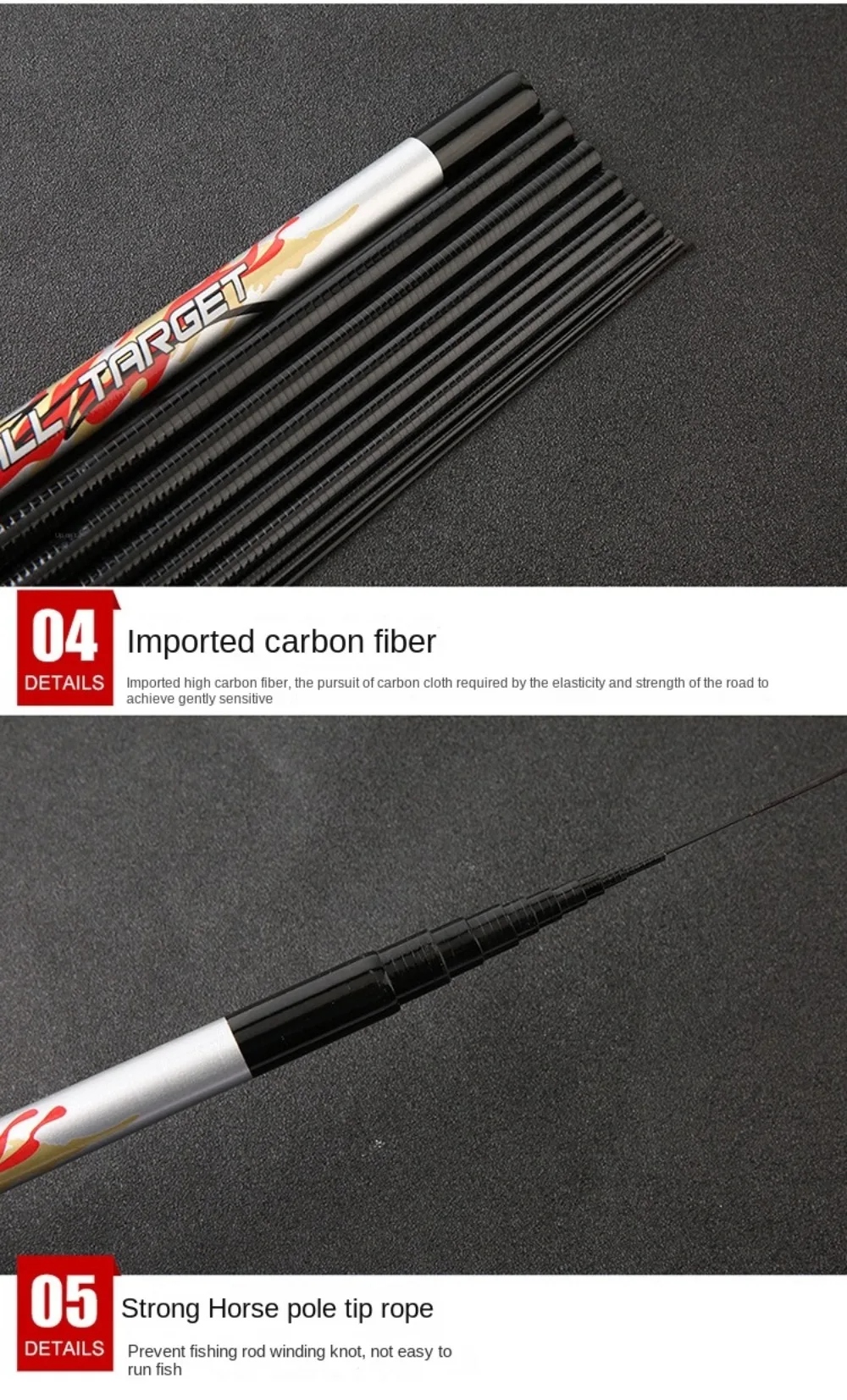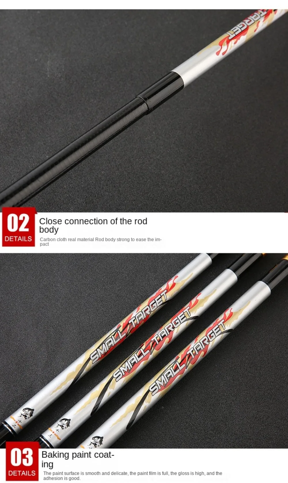 4.El cuerpo de la varilla es adecuado para tela de carbono de alta calidad, 45 tejidos cruzados.Curvatura mejorada para evitar roturas.