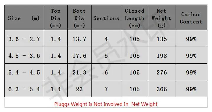4. La longitud total de la varilla se puede cerrar, por ejemplo, 3,6 m se puede cerrar a 2,7 m, 4,5 m-3,6 m, 5,4 m-4,5 m, 6,3 m-5,4 m.