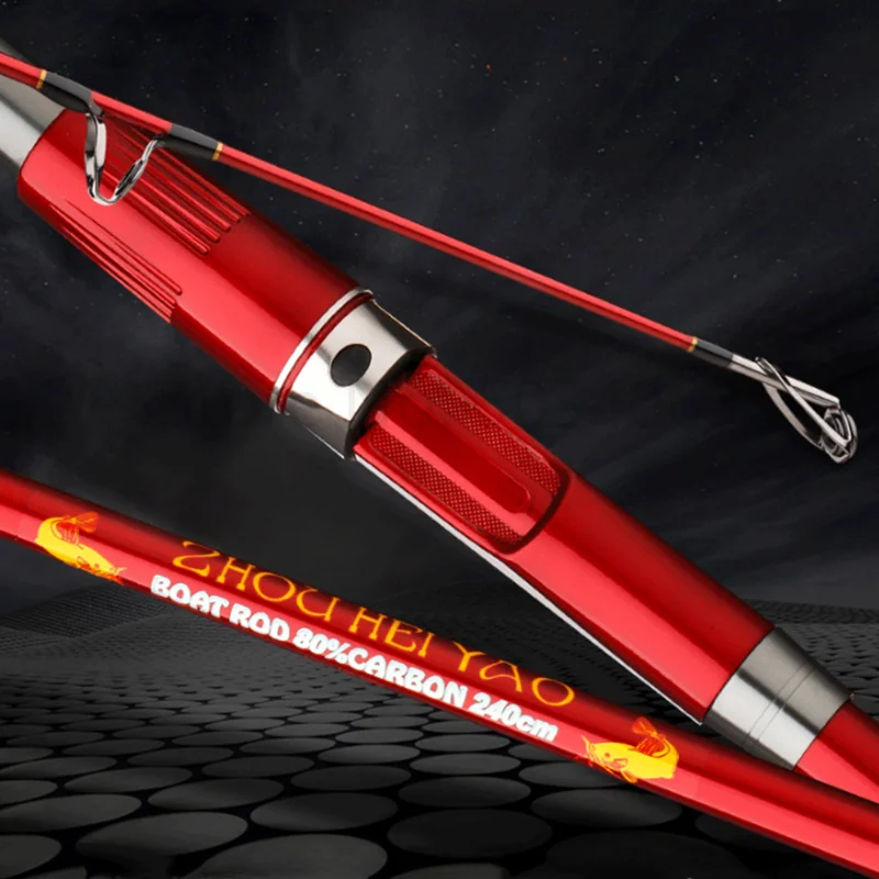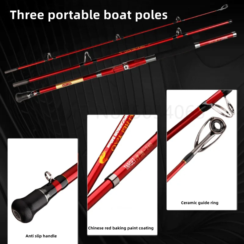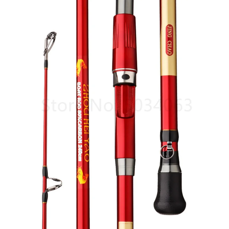 Caña de pescar ultraligera de carbono duro, caña de pescar portátil para barco, caña de señuelo de 1,8 m, 2,1 m, 2,4 m, roja, 3 secciones, nueva